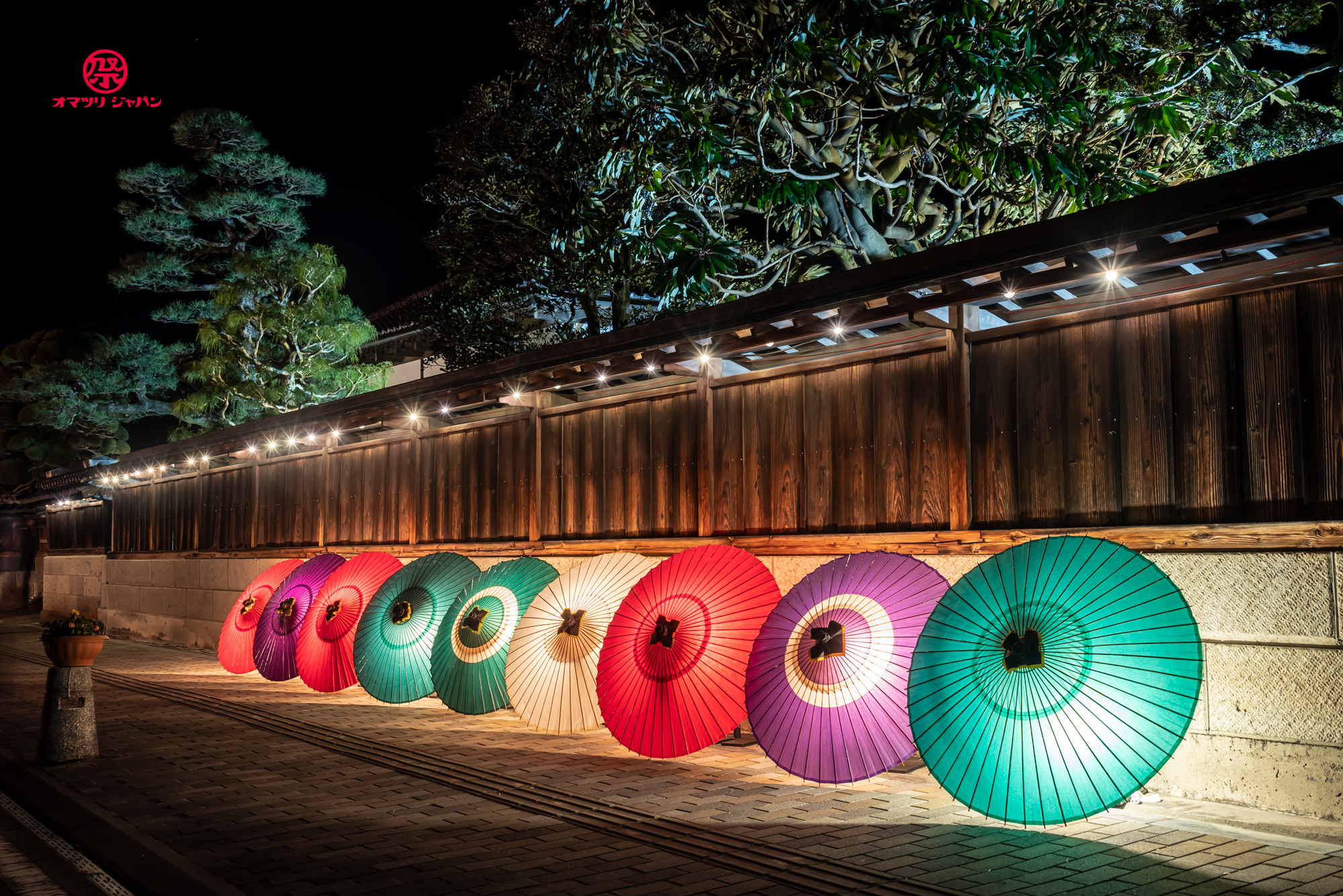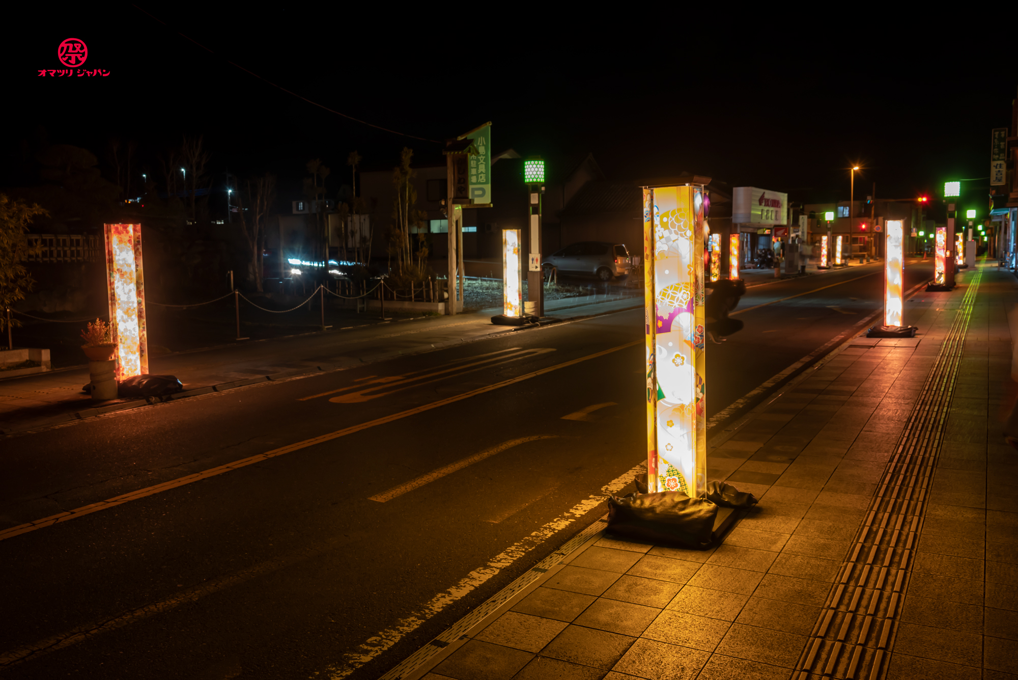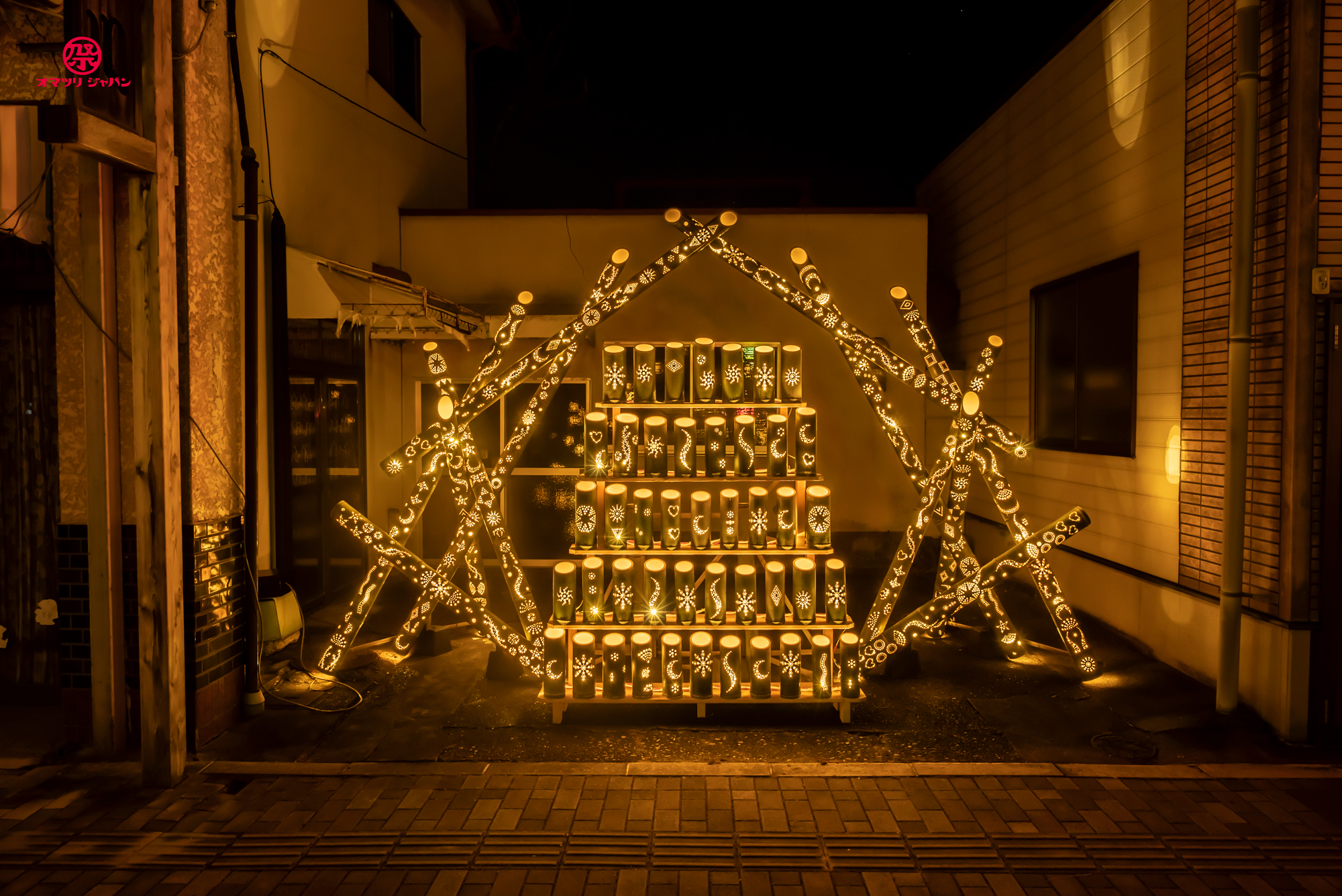 馬頭商店街の500mもの区間を和で統一し、竹や和傘や提灯などで飾り、夜になればライトを点灯させ一面の和のイルミネーションで照らします。期間は約1か月の展示になり、土日は16:00から歩行者天国になるそうです。