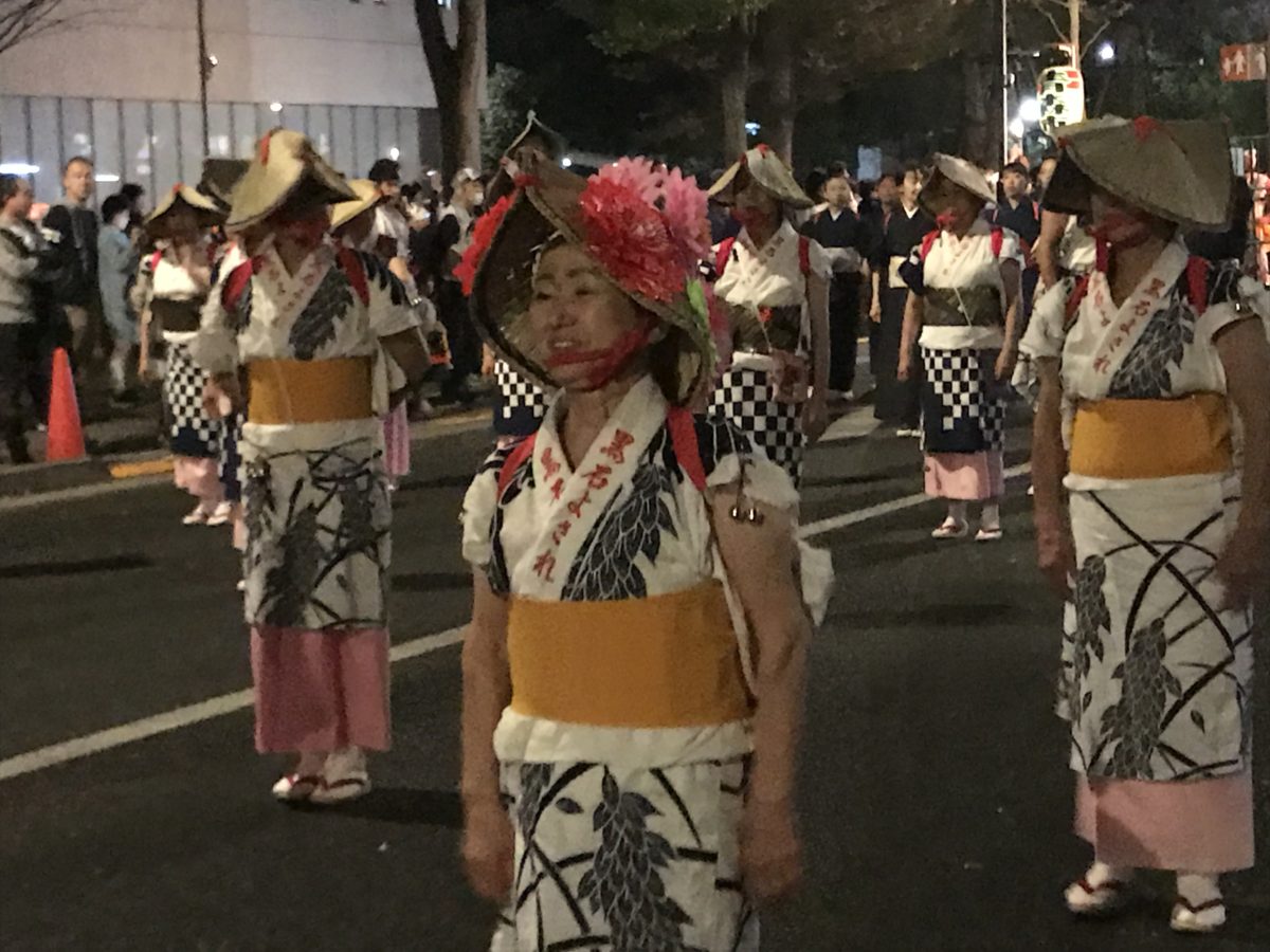 黒石から30人くらいで来たのよ、だからしっかり遊んできたわよ。迎賓館に行って、六本木に行って、中野に来たのよ。この後は打ち上げよ。それが楽しみなのよ。さあ、始まるから、入って踊っていきなさい!」