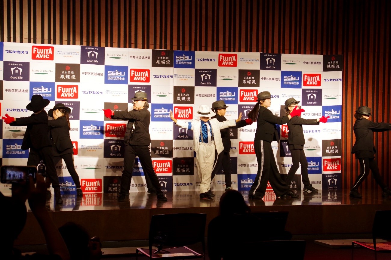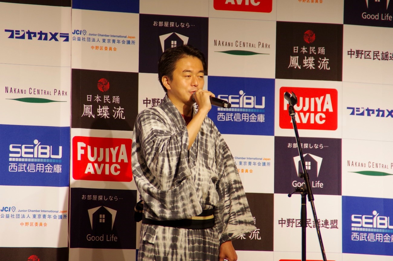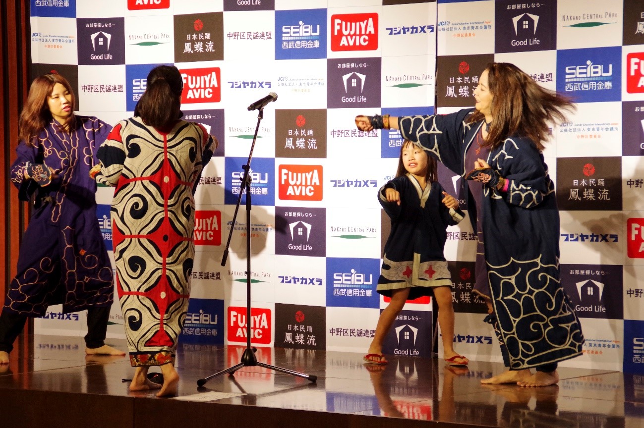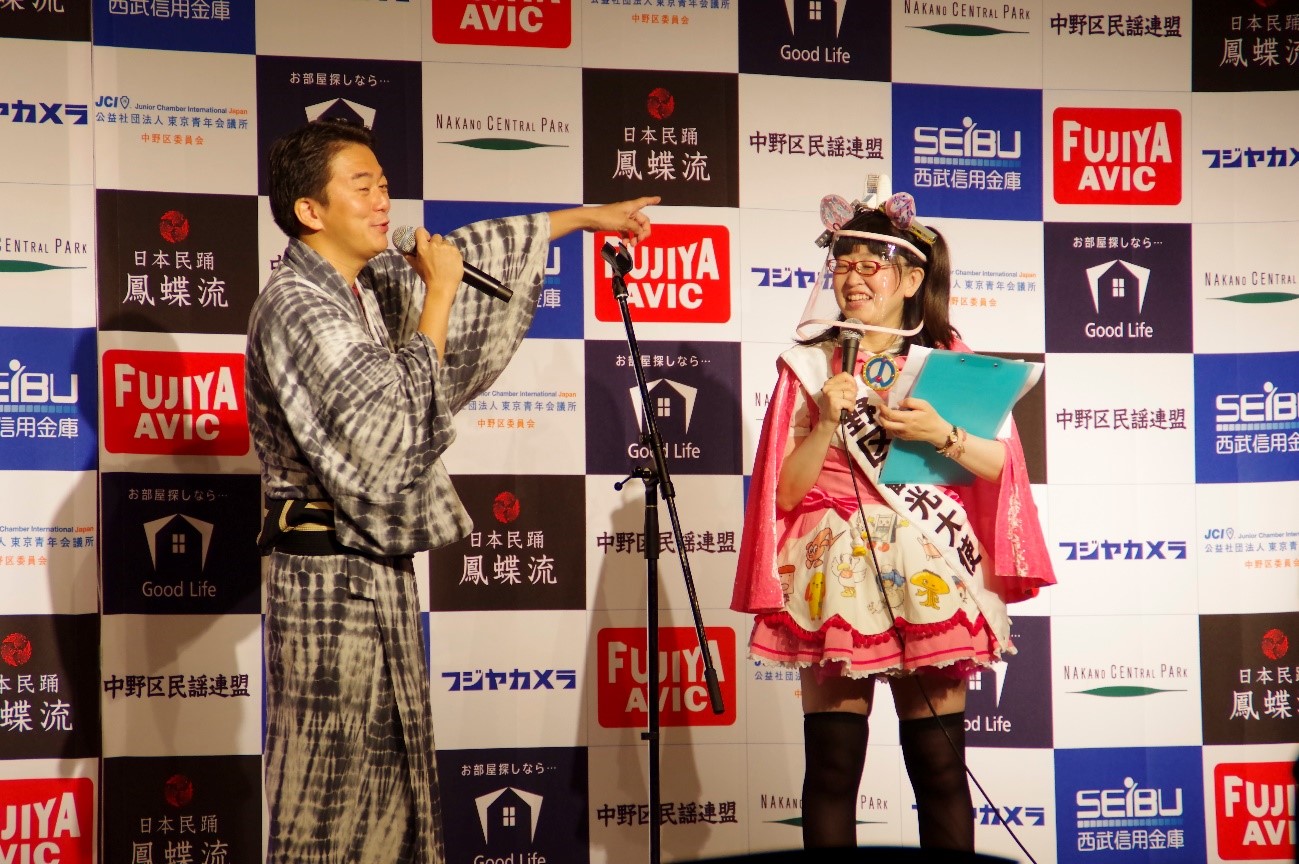 10:00、司会で中野区観光大使のメトロポリちゃんVさんが登場しイベントがスタート。まずは実行委員長を務める鳳蝶流鳳蝶会家元師範・鳳蝶美成 (アゲハビジョウ)先生が挨拶を行いました。