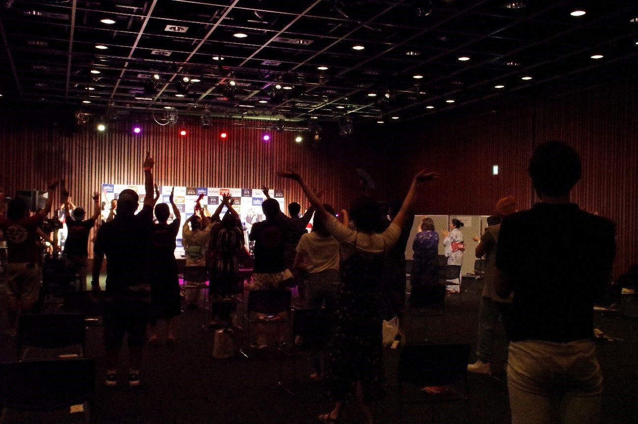 第二部は、「中野チャンプルーフェスタ」や「東京高円寺阿波おどり」など全国で中止となってしまった盆踊り大会を招待し演舞を行ってもらう、というプログラム。各グループ、観覧者の方へ踊りのレクチャーがあり、見るだけでなく踊って文化を体験することもできます。