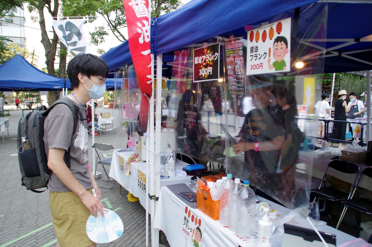 地下にある中野セントラルカンファレンスで生配信が行われる一方、地上の中野セントラルパークではお祭りには欠かせない縁日が開かれていました。もちろん感染拡大防止の工夫も施されています。