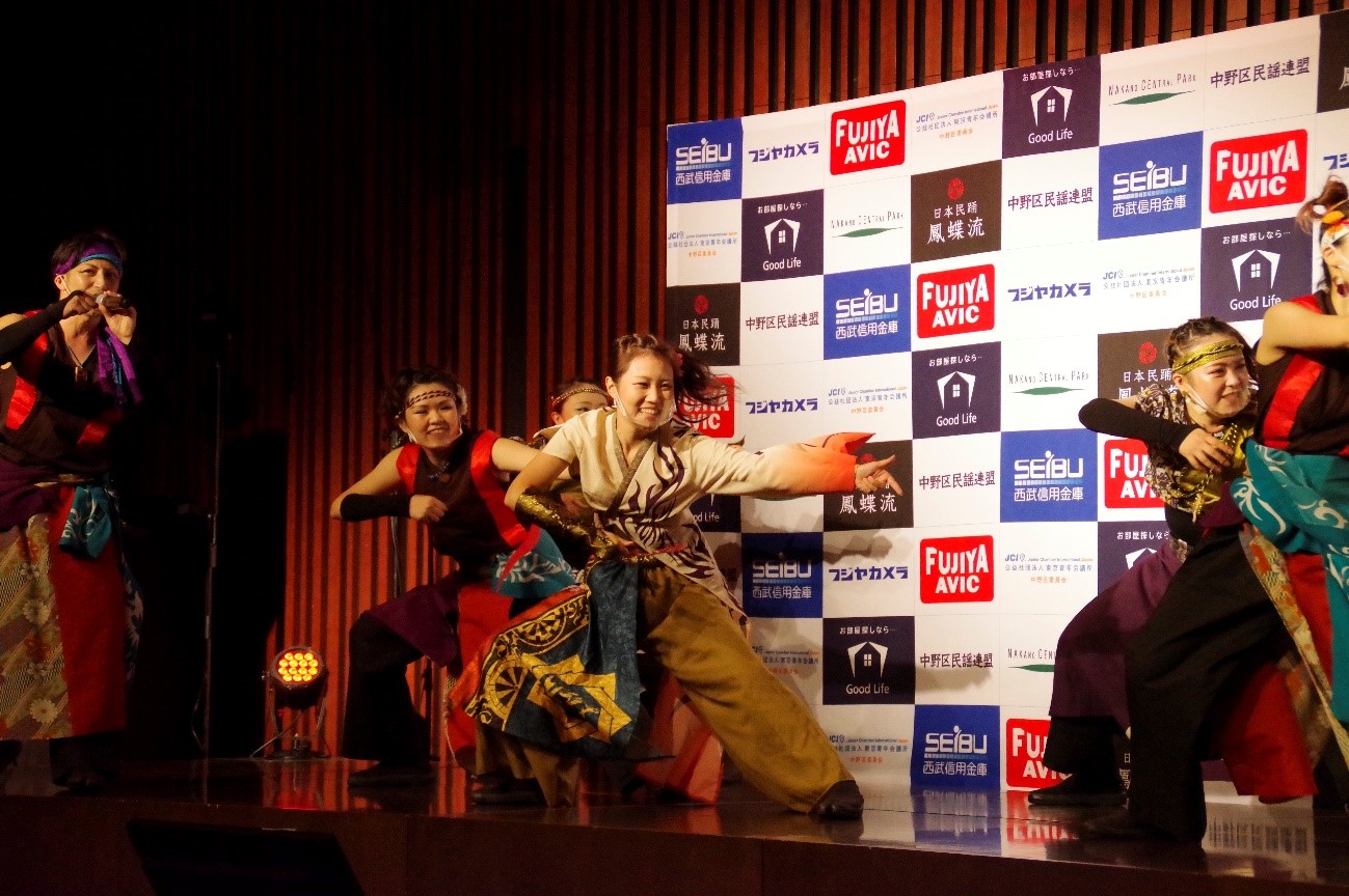 中野チャンプルーフェスタに出演予定だった沖縄三線奏者・伊藤淳さんの演奏から始まり、東京黒石会による黒石よされ、和樂連の阿波踊り、アイヌ式古式舞踊を踊ったAYNURUTOMTE、ハツラツとしたダンスで会場を盛り上げた燦~SUN~、沖縄の伝統的な踊り・エイサーを披露した学生団体東京中野区新風エイサー、北は北海道・南は沖縄までの伝統を体現する6団体が登壇。