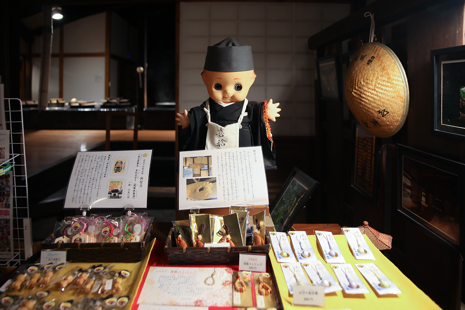売店には和歌山の法輪寺から贈られたキューピー小僧。御朱印はこちらで拝受できます!