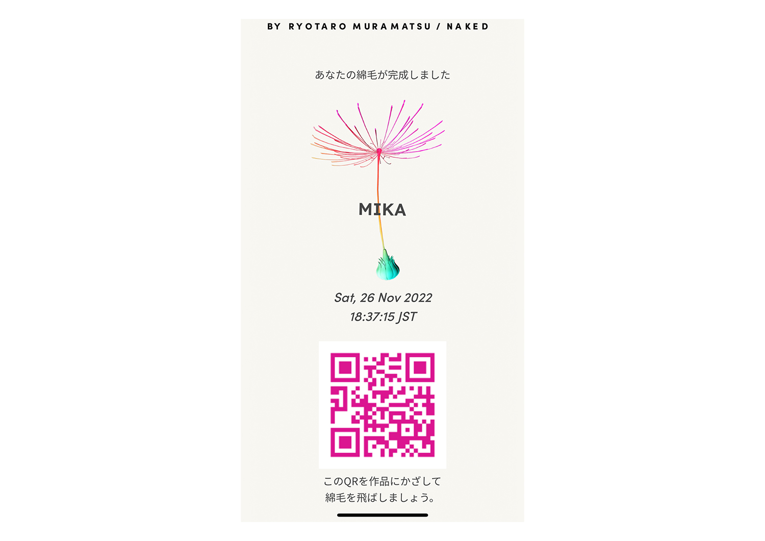 QRコードが作成されるため、それを大きな綿毛のモニュメントの前にある機械に読み込ませます。