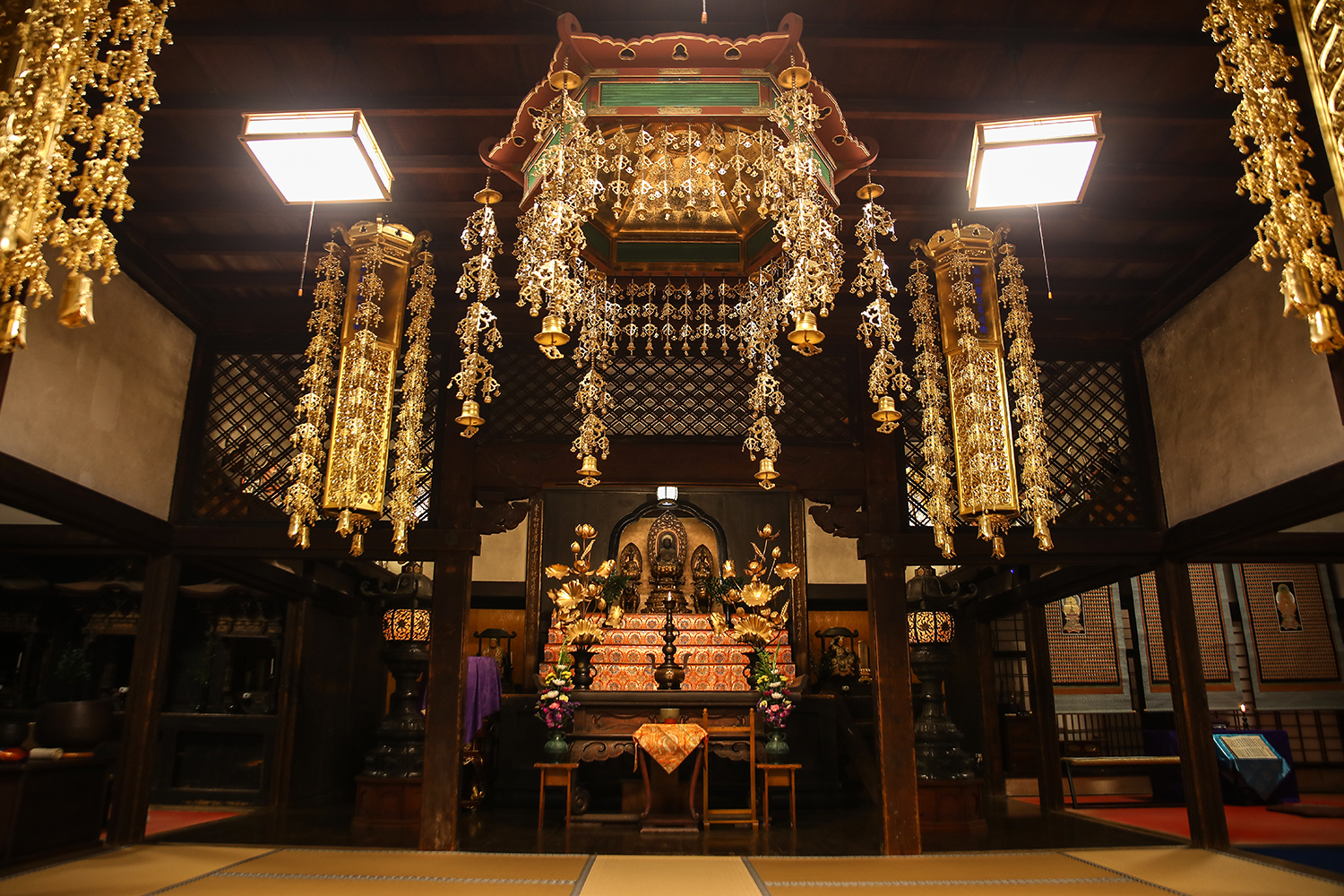 伏見城の遺構で建てられたという本堂で、キュッキュッと鳴る鴬張りの廊下や血天井、杉戸絵などが特徴です。