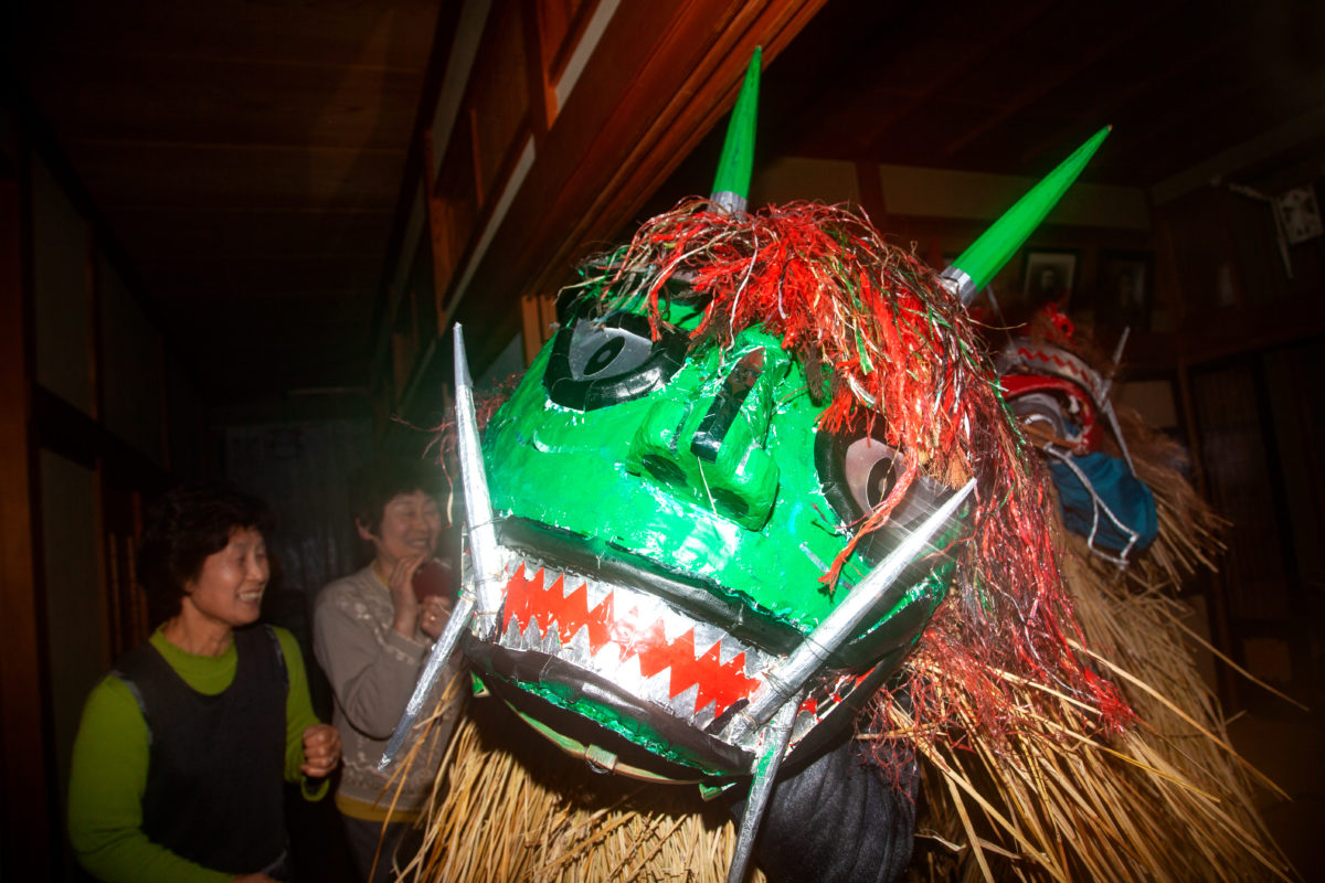 秋田県男鹿。角のように西側へ飛び出し、3方が日本海に囲まれているこの地には、大晦日の晩、厳しい冬と共にナマハゲと呼ばれるか神様が訪れる。