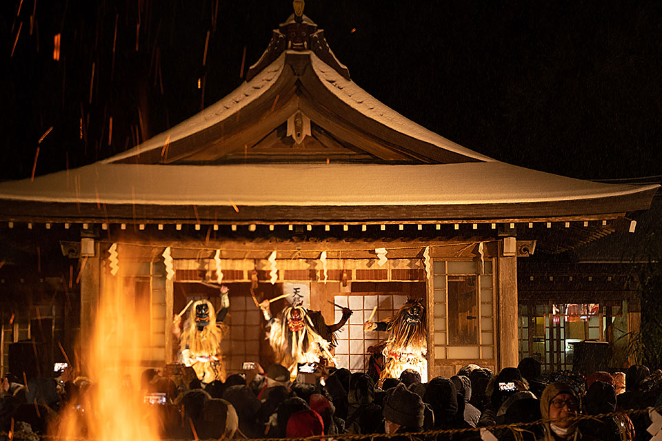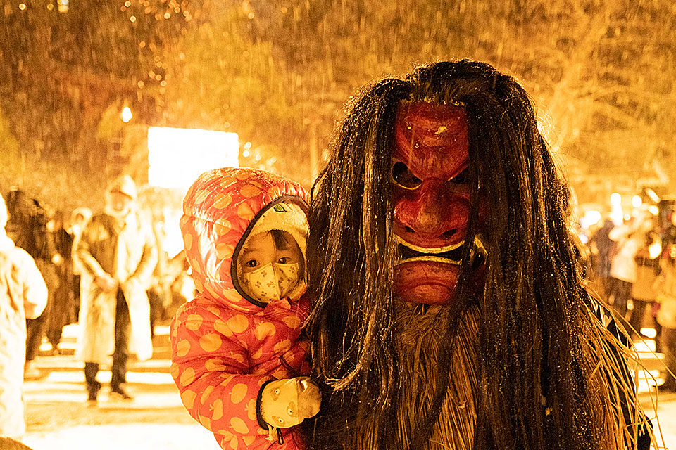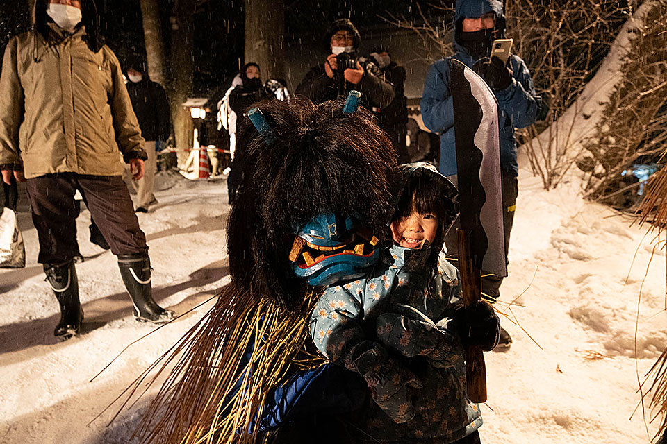 顔つきも雰囲気も地域も違うバラエティー豊かななまはげたちが、これまた性別も年齢も国籍もバラバラなお客さんたちと一緒になって、柴灯火を囲みながら楽しい時間を過ごしている。その様子を見ていると、なぜだかじわっと胸の奥が温かくなり、不思議な多幸感に包まれていきます。大げさな言い方になりますが、神様という存在をこれほど身近に感じた体験は、自分の中でも今までなかったような気がします。