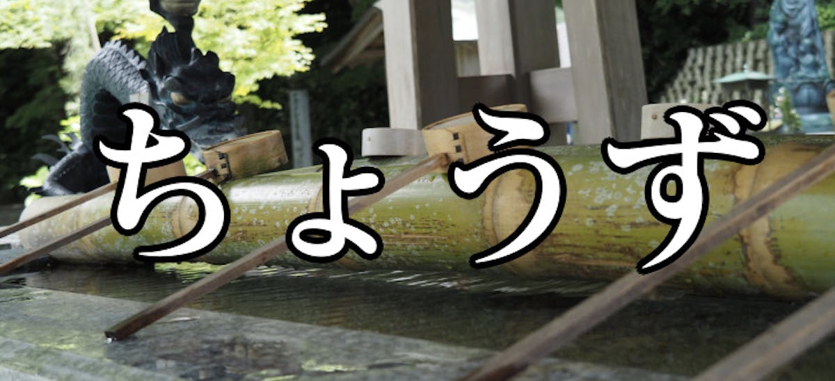 神社に行ったときに、お参りする前に手に水をかけるあの場所……「手水」という漢字が浮かんでくるけど、意外に読み方を知らない人も多いのでは? 「てみず」と読んでいる方、それも正解です! しかし今回のクイズでは、もう1つの読み方を当ててみてください。正解はこちら!