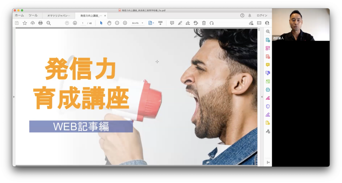 そのため、今回、奈良商工高等学校の玉関先生からご連絡いただいた時はとても嬉しく、オンラインで講演させていただいた時も高校生の皆さんが真剣に、そして笑顔で講演を聴いてくれてとても楽しい時間を過ごしました。