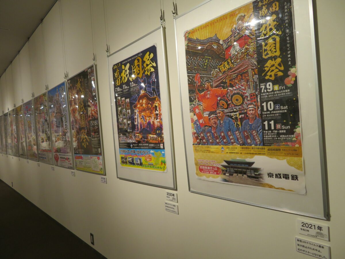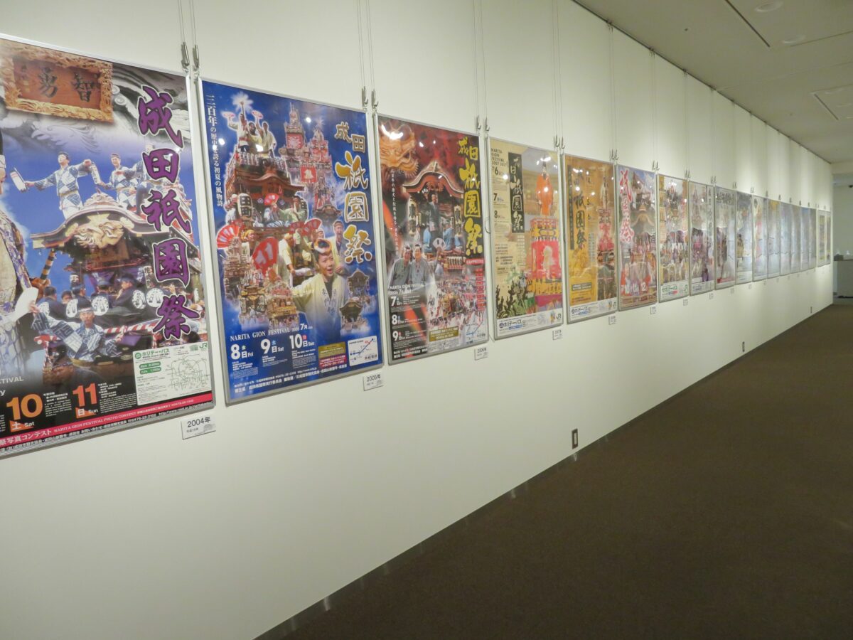 5階の展示会場の周囲を囲む「成田祇園祭」の歴代のポスター