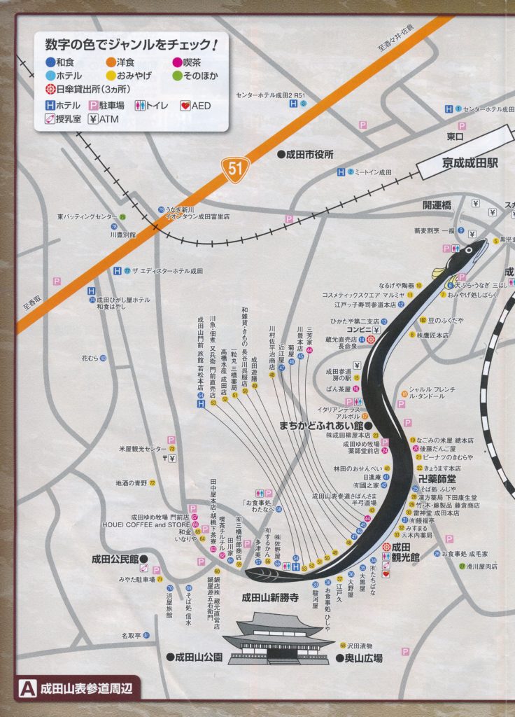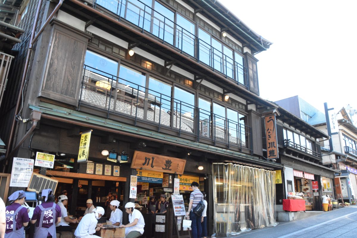 成田山新勝寺の参道で3軒のうなぎ料理の名店が隣り合うエリア