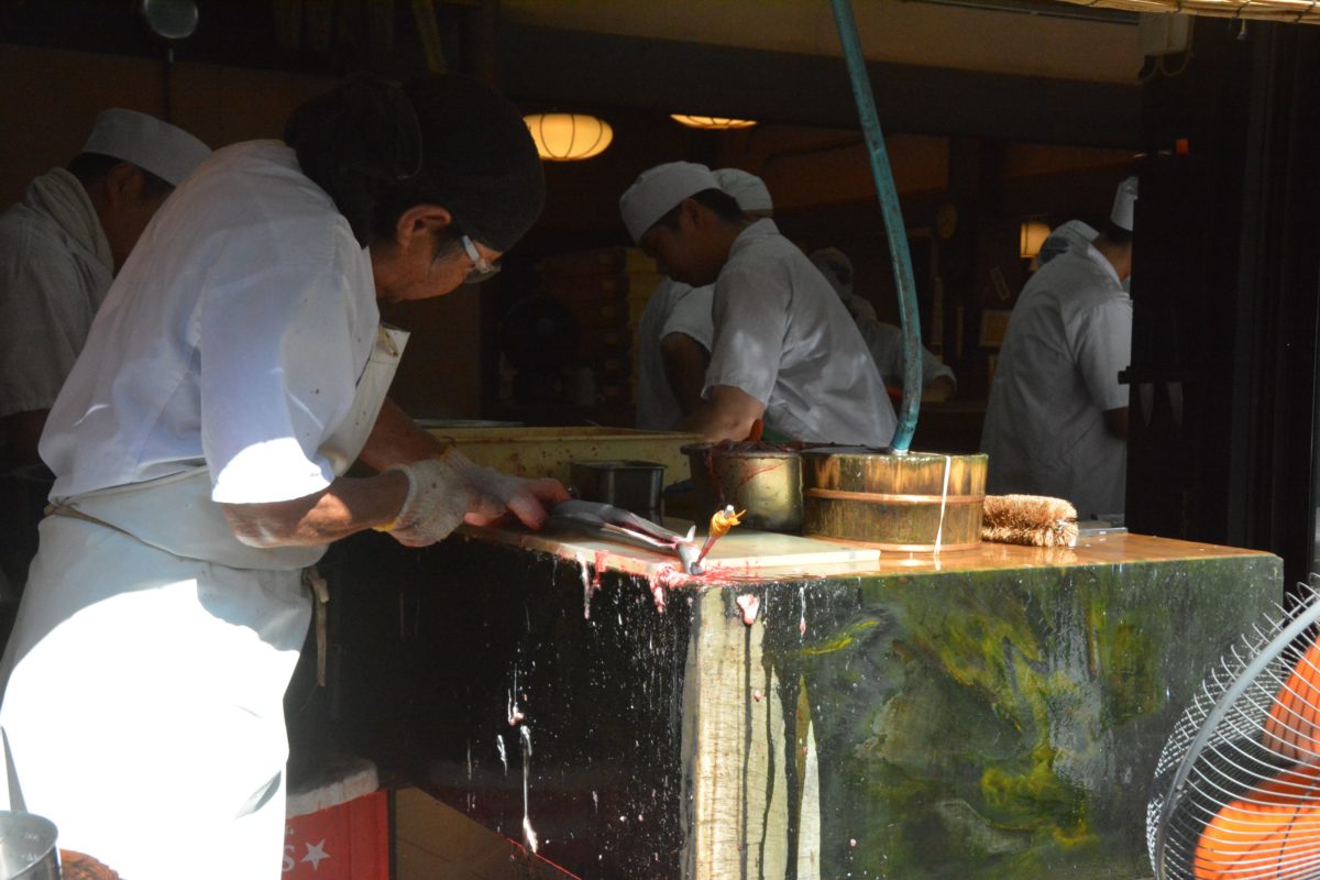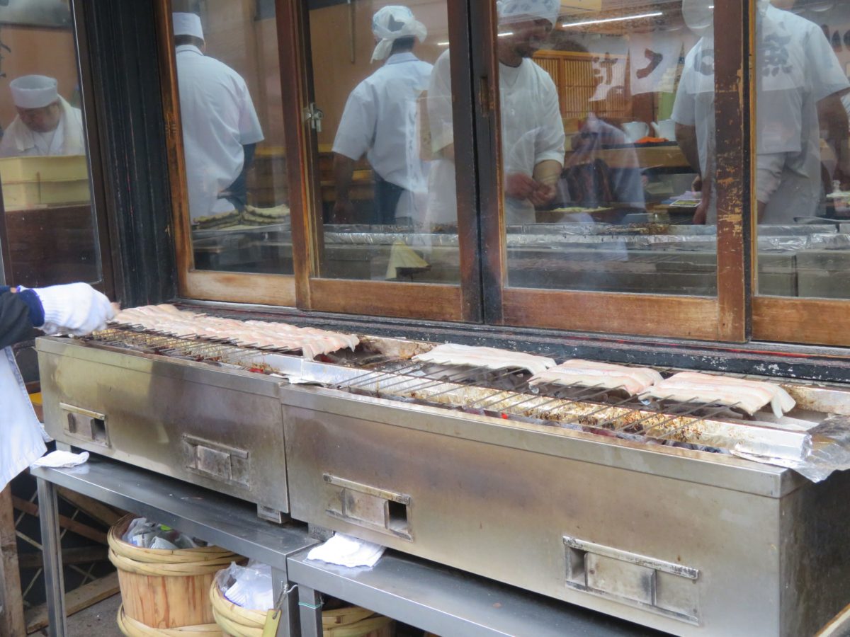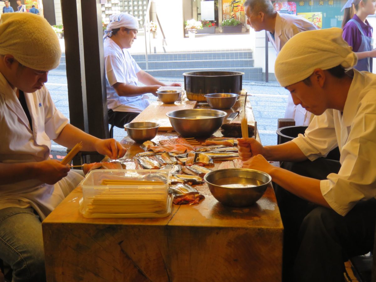 「駿河屋」の店先で捌かれるうなぎ