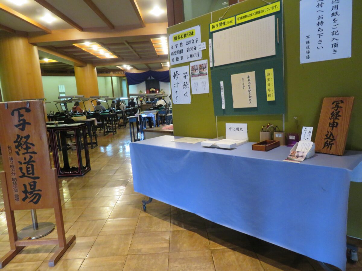 参道をさらに進むと、隣り合う醫王殿と平和の大塔に突き当たります。塔の高さは、真言密教の教えを象徴する58メートルです。平和の大塔の中は写経道場の教室が設けられています。