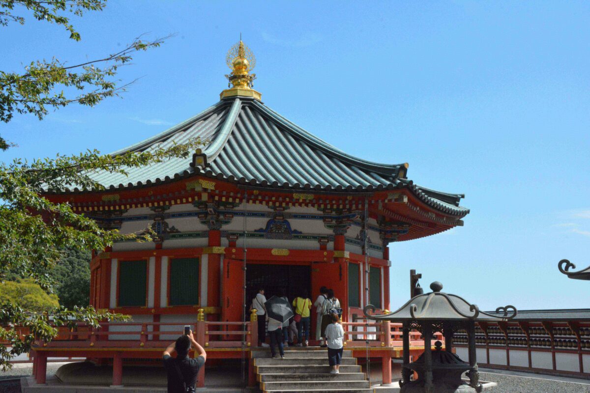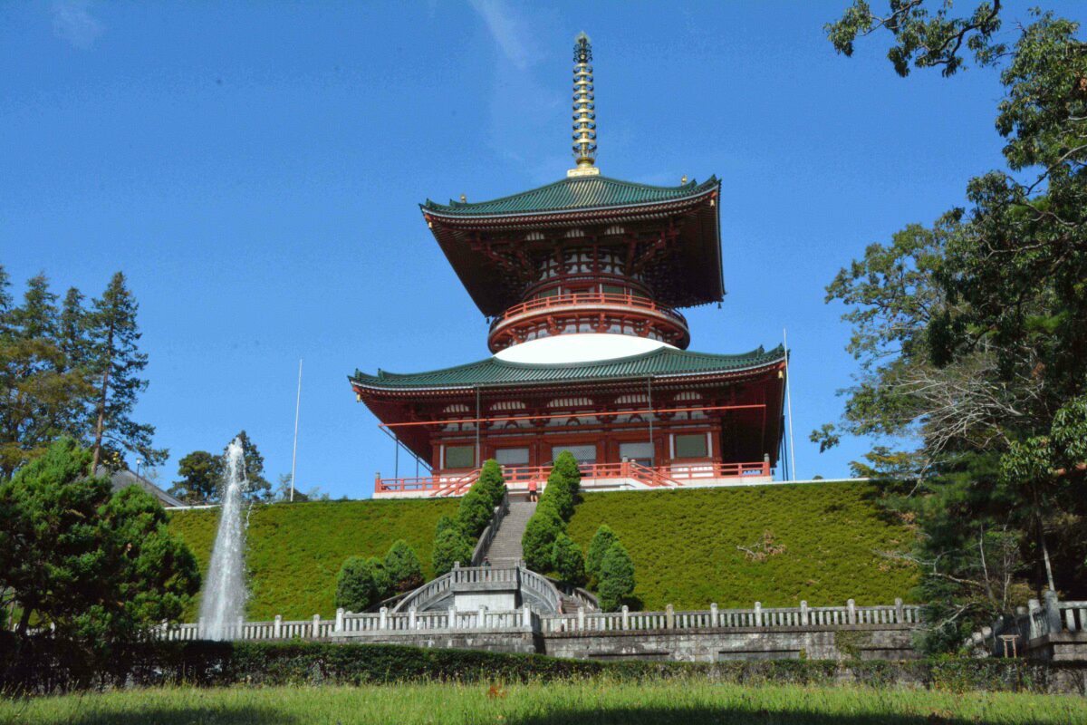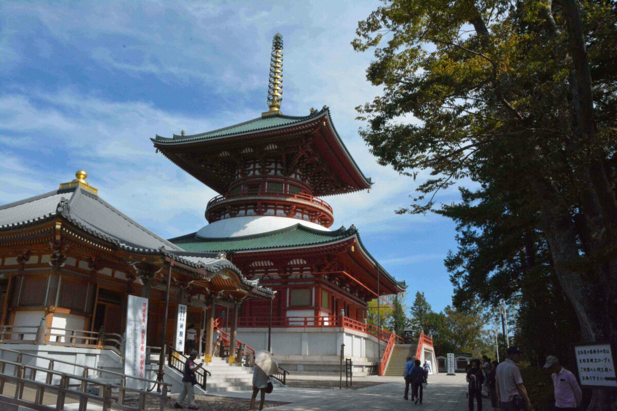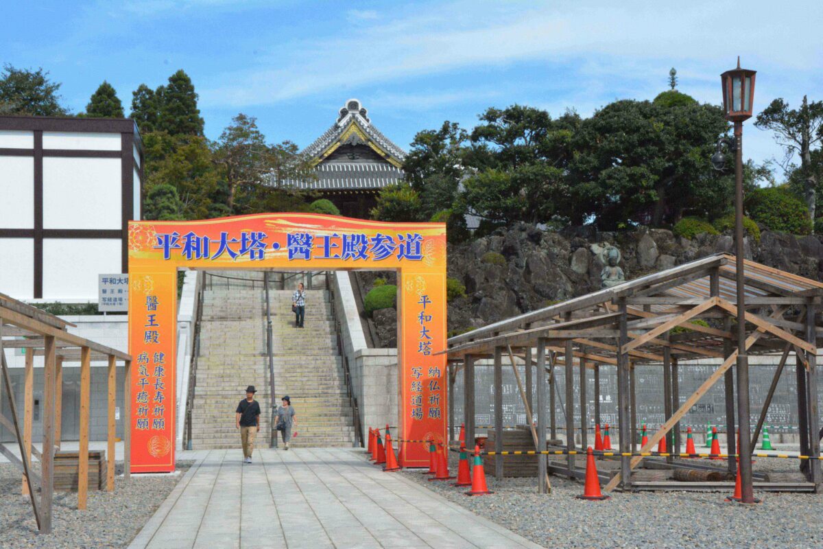 平和大塔・醫王殿参道の突き当りで隣り合う醫王殿と平和の大塔