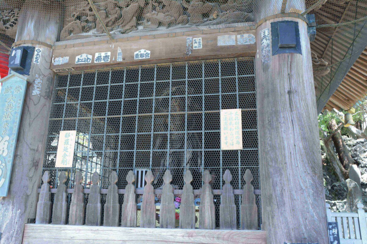 光明堂の後方の奥之院は洞窟です。洞窟の中には不動明王の本地仏、大日如来像が安置されています。普段は立ち入ることはできないのですが、年に3日間、7月に開催される祇園会の開催日に開放されます。