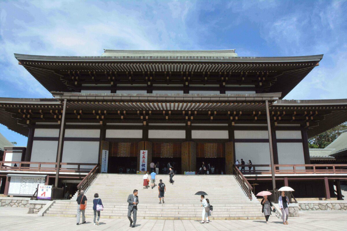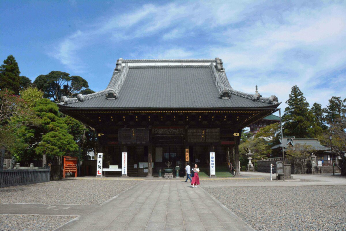 荘厳な雰囲気の2つの門を潜り、解放感溢れる敷地の正面に姿を現すのが大本堂です。寺院の中心道場では不動明王がご本尊として祀られ毎日、御護摩祈祷が行われています。