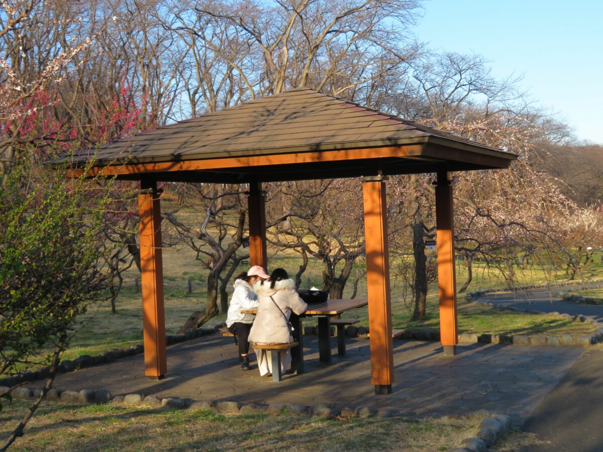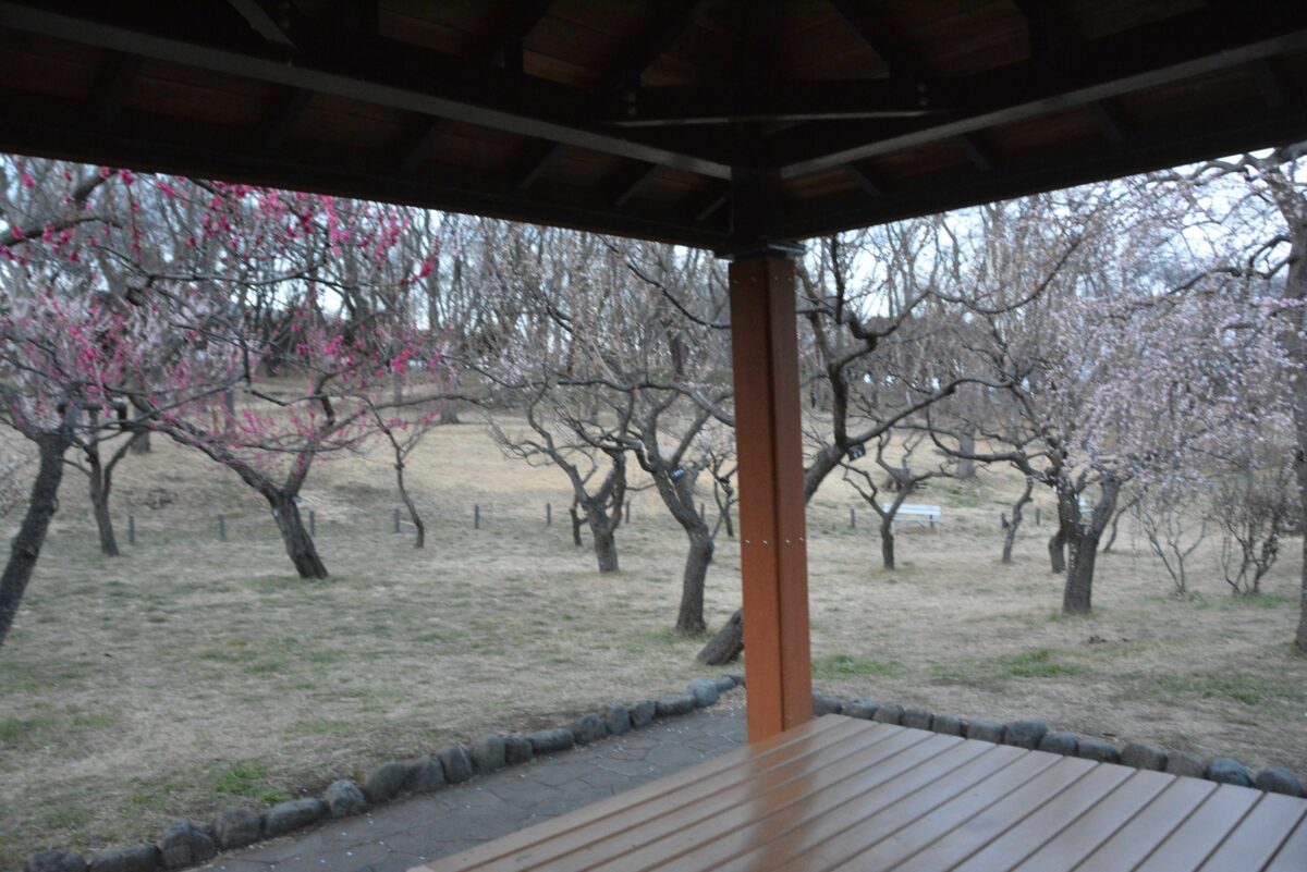 梅林の敷地内には園路が整備され、ベンチや四阿も設けられています。ゆったりとした空間で、落ち着いた雰囲気で梅の花を観賞することができます。