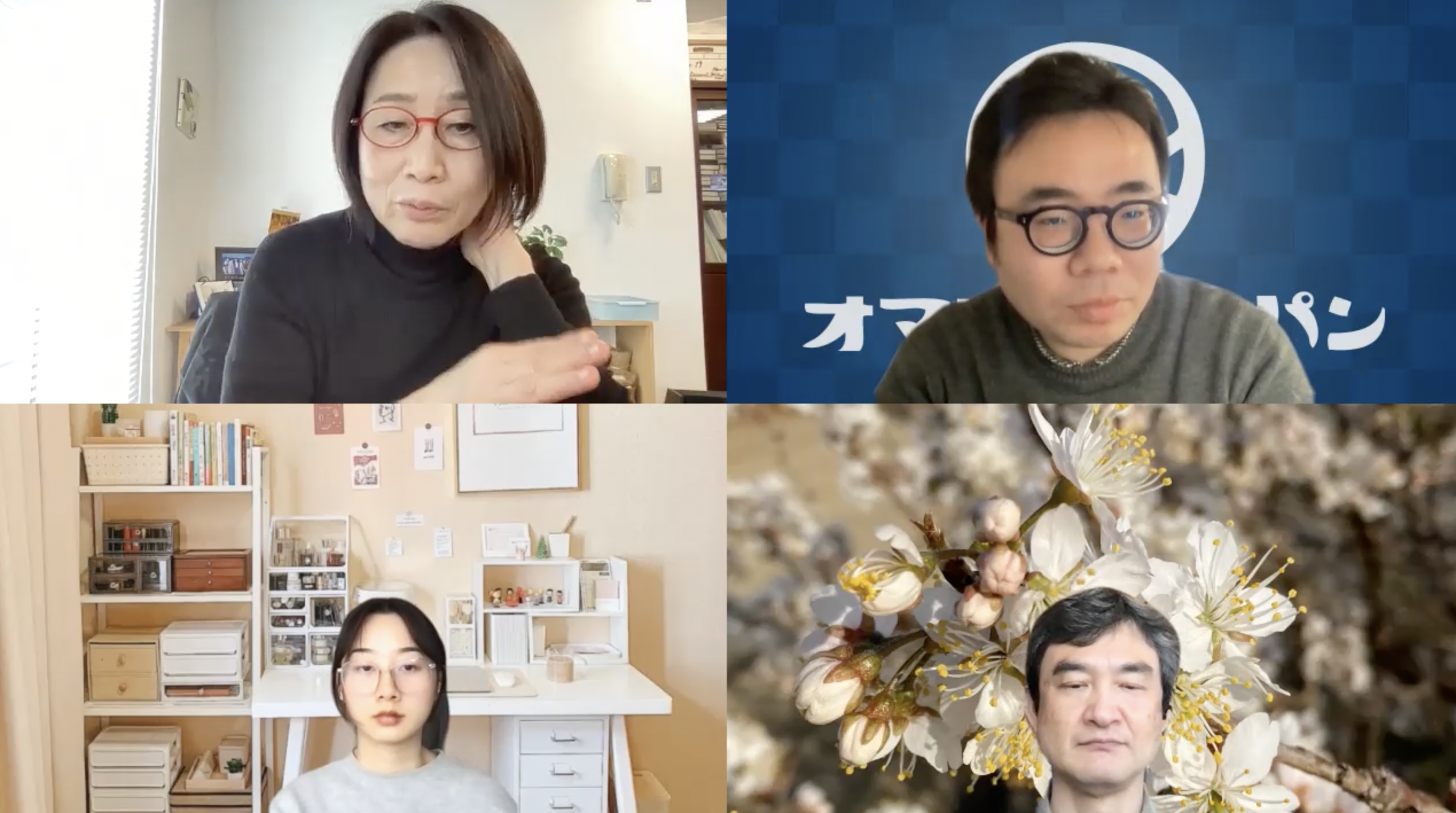 金山智子さん(左上)、王芯藍さん(左下)、小林孝浩さん(右下)、筆者-小野和哉(右上)