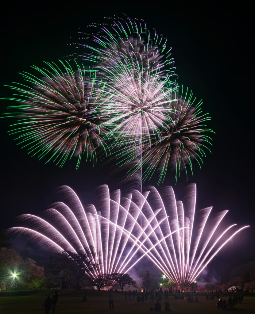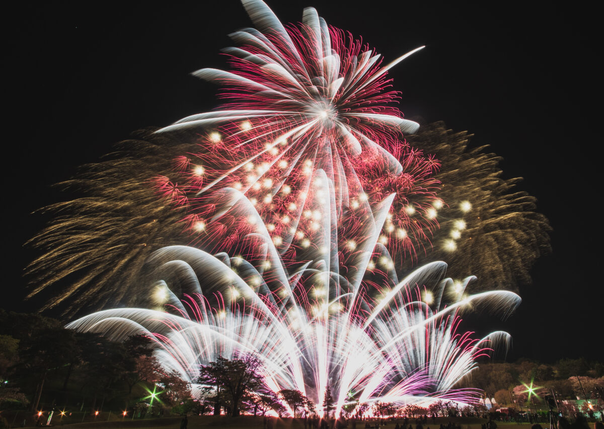 ちなみに小ネタですが、写真の一番上に開いている花火の名前は「八重桜」という名前だそうです。桜づくしですね。