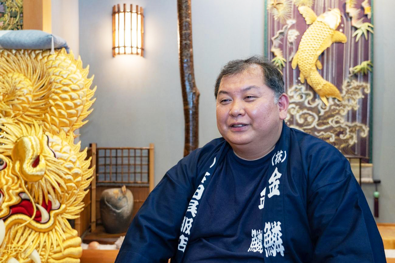 54台の「太鼓台」と呼ばれる山車が街を練り歩き、かきくらべでその華麗さを競い合う新居浜太鼓祭り。今回、伝統行事・文化の伝承について、株式会社金鱗(きんりん)・合田武史さんに太鼓台の顔である「飾り幕」を手掛ける立場から、お話を伺ってきました。