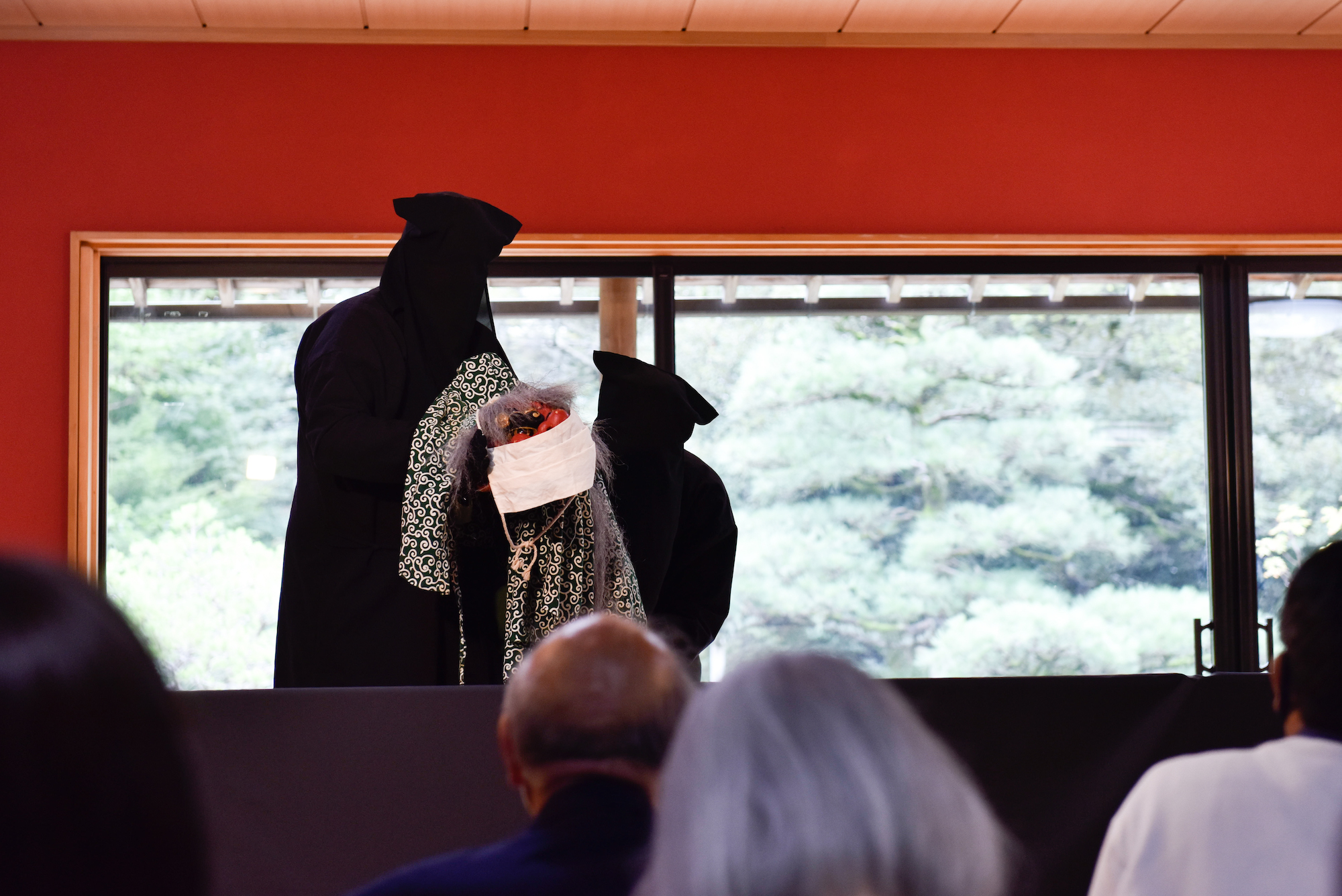 客席のお客さんを厄払いするため、獅子がお客さんの頭を噛んでいたところ、途中で劇団員にマスクを被せられるシーンもあった。新型コロナウイルスの流行という社会情勢を演目にも取り入れたようだ。