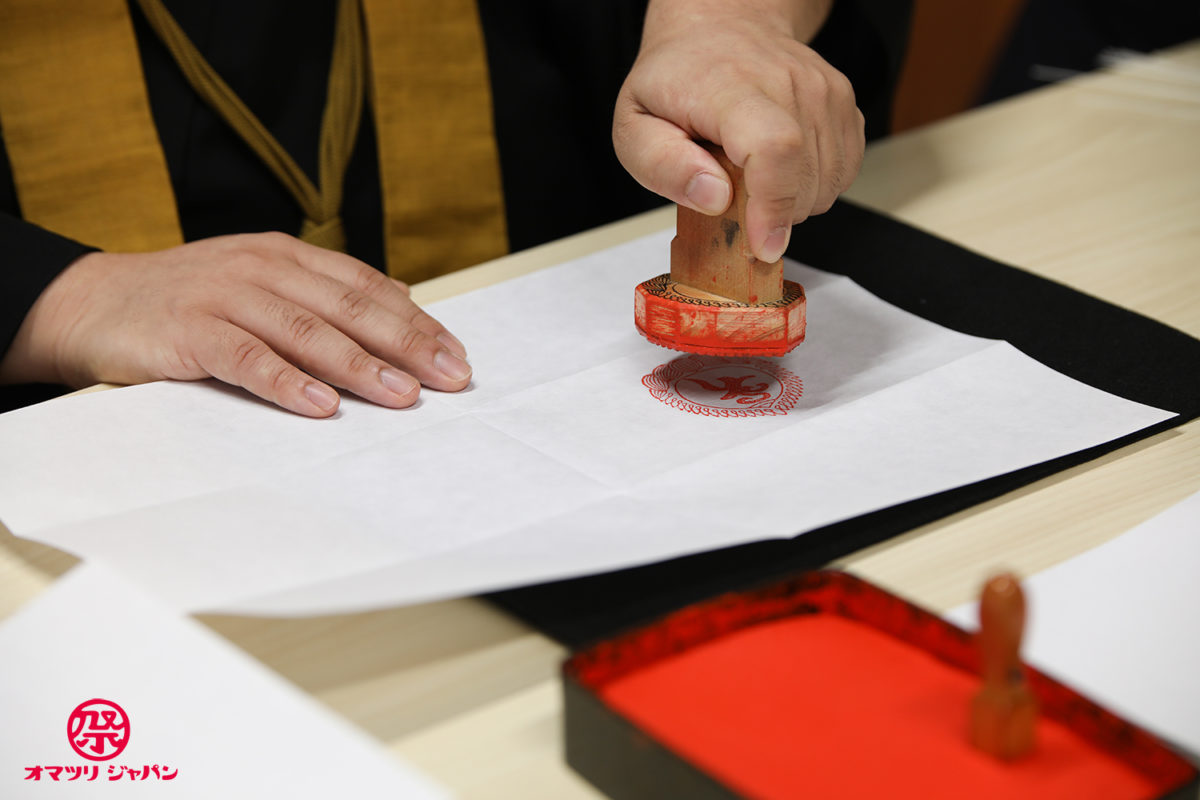 通常は無地ですが、参拝者の皆様にお配りしているものは、お参りの印として病気平癒のご利益のある薬師如来の種字「バイ」の梵字を押印しています。