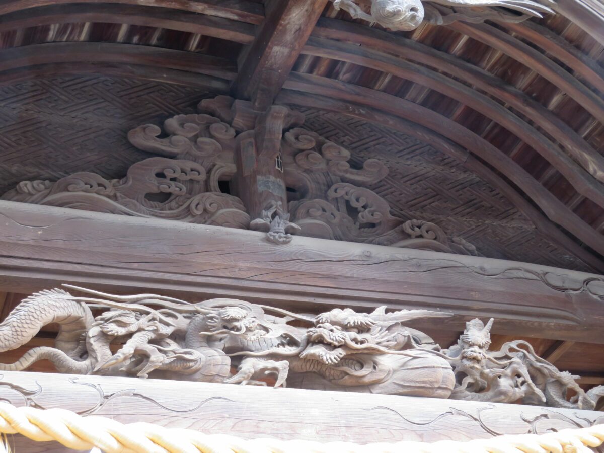 拝殿の向拝を装飾する龍の彫刻