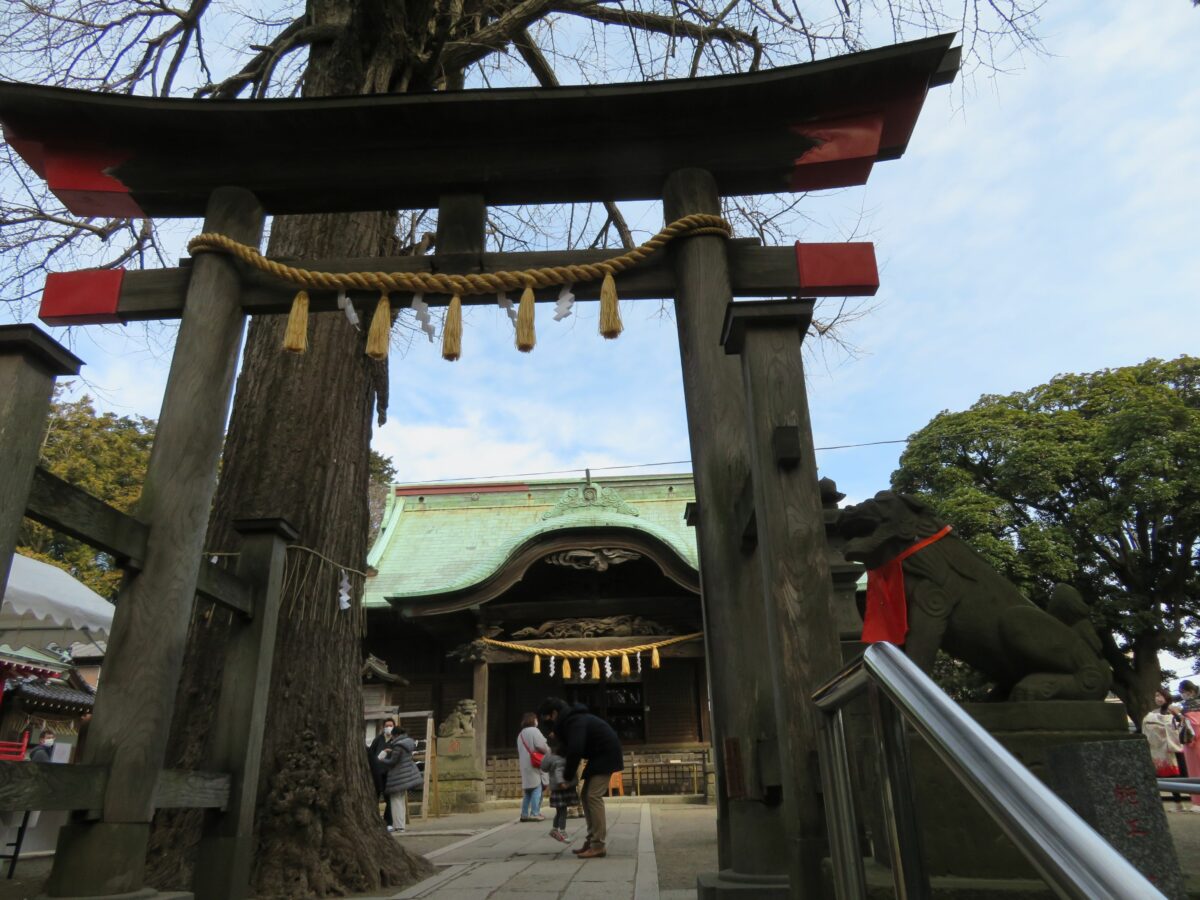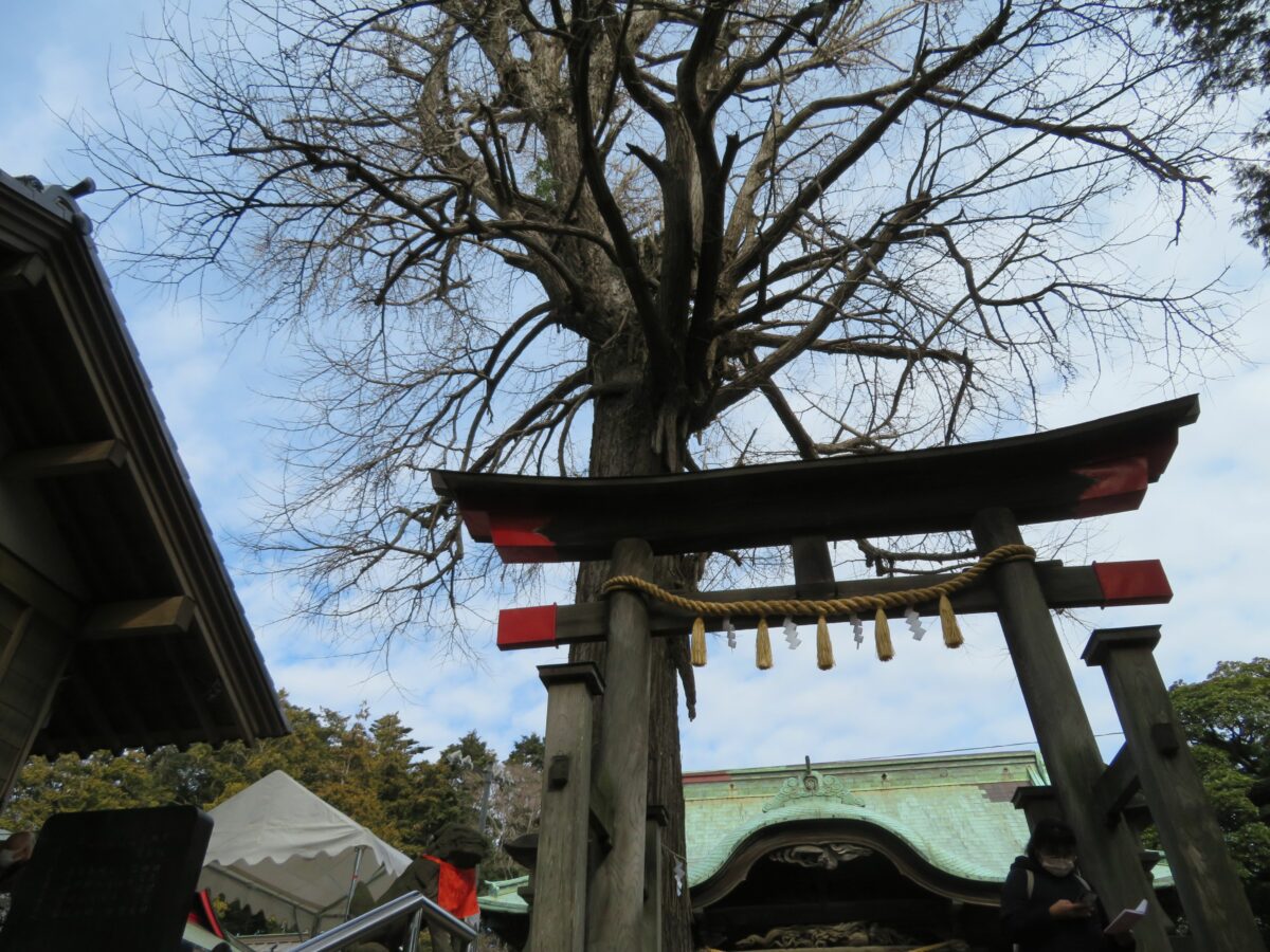 拝殿の正面の二之鳥居と御神木