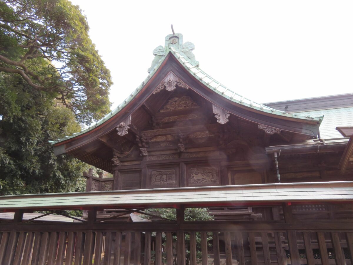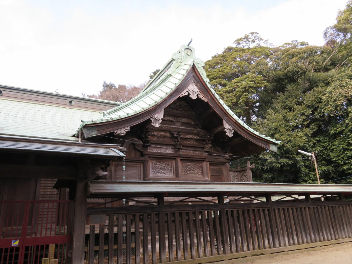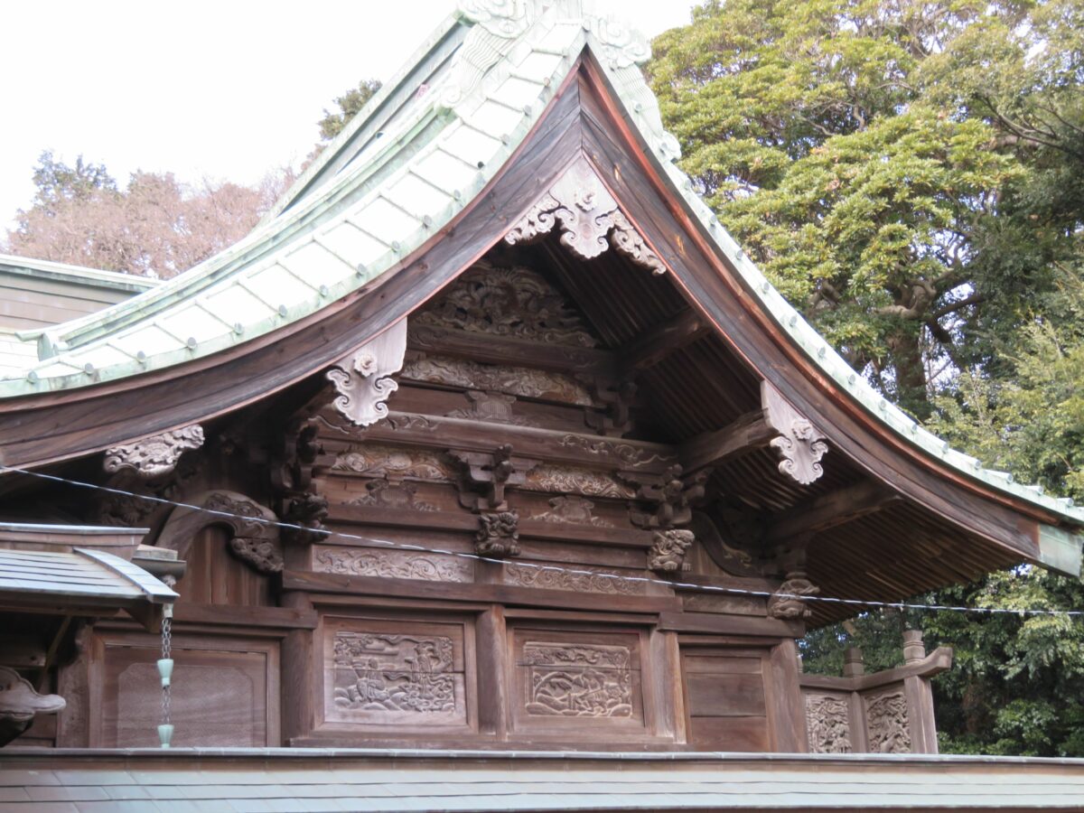 二宮神社は、9世紀に嵯峨天皇の勅命によって創建された寒川神社を起源とすると伝えられています。その後の鎌倉時代には二宮神社に改称されていたようです。現在の社殿は18世紀に再建されたものです。権現造りの様式で並び立つ拝殿、本殿の屋根は銅板葺となっており、壁面などには緻密な彫刻が施されています。本殿の東西の両面には、中国の24人の孝行者の物語『二十四孝』が刻まれています。