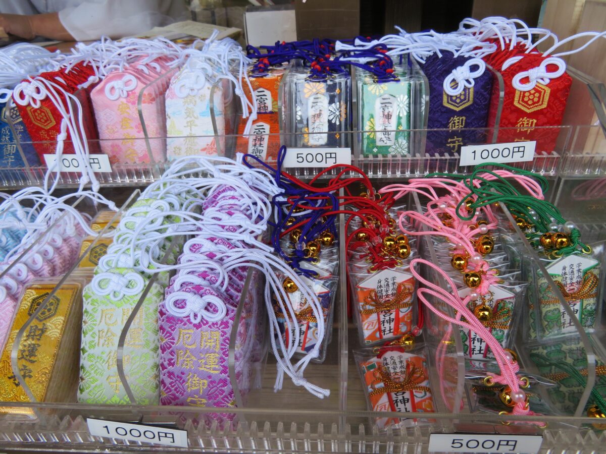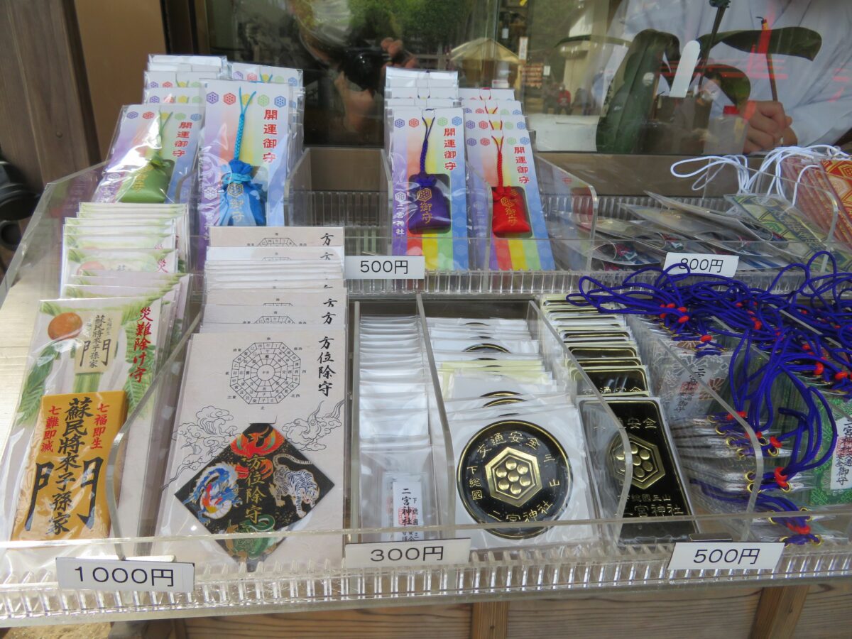 二宮神社では二之鳥居に隣接する授与所で、御朱印を頂くことができます。窓口には、お守りなどバラエティー豊富な授与品も並んでいます。