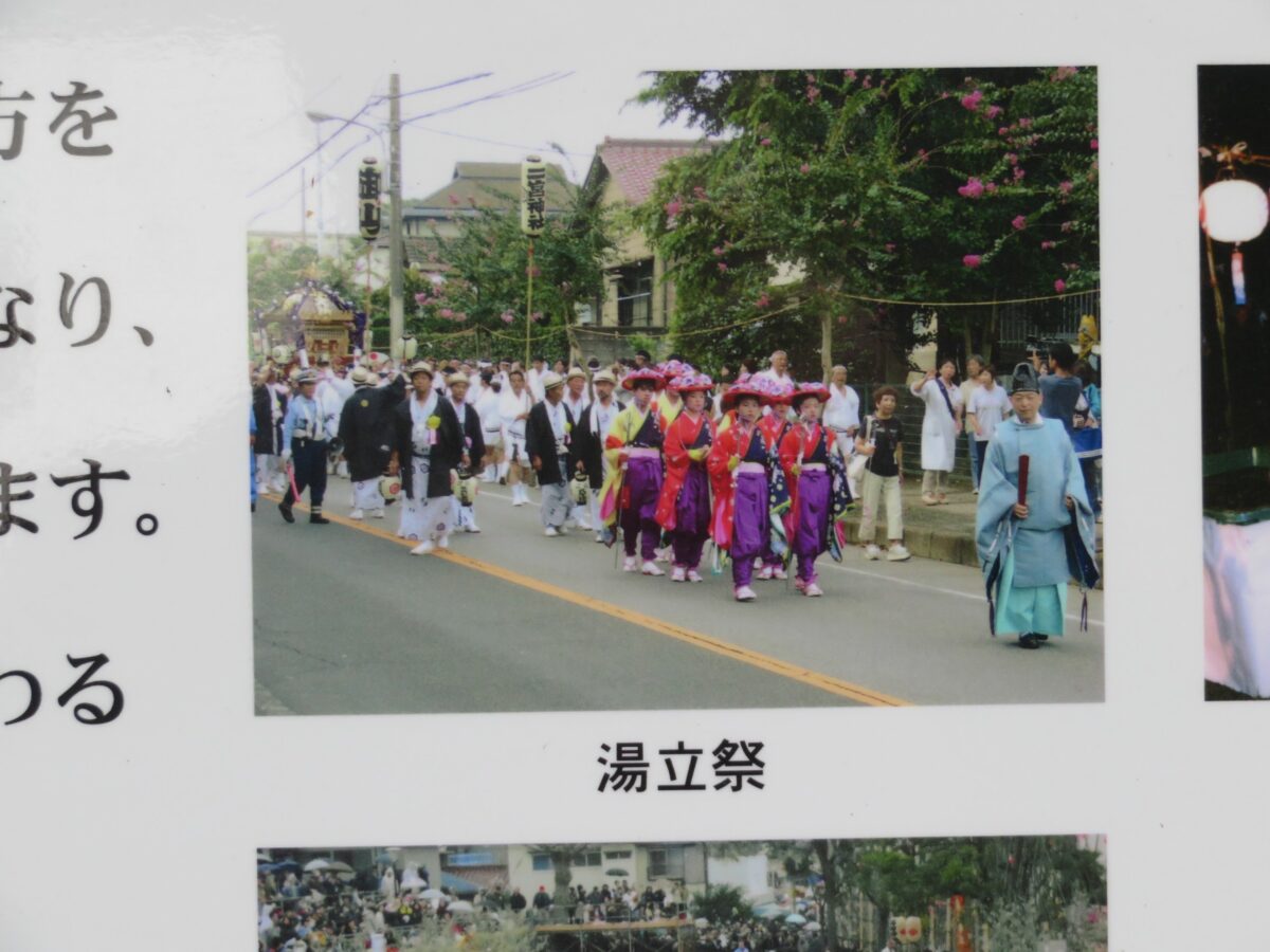 案内ボードで紹介される「下総三山の七年祭り」の「湯立祭」