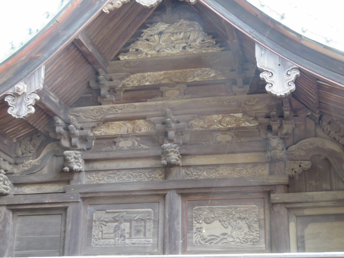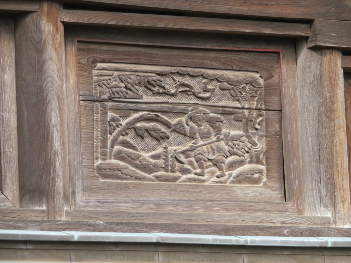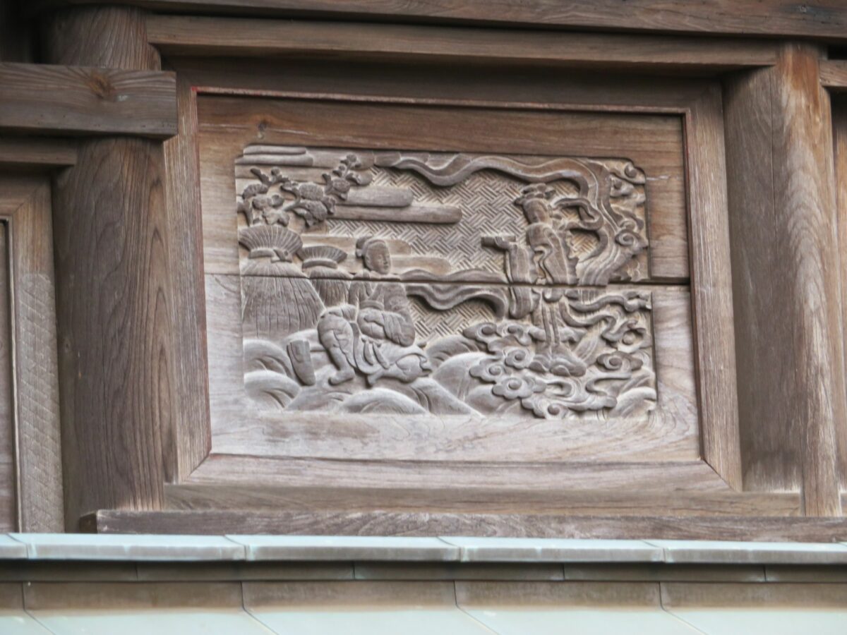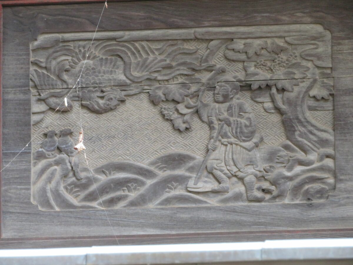 本殿の西面に刻まれる『二十四孝』の大舜