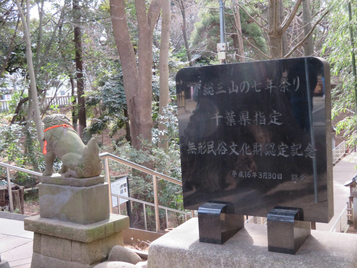 「下総三山の七年祭り」の千葉県無形民俗文化財認定記念碑