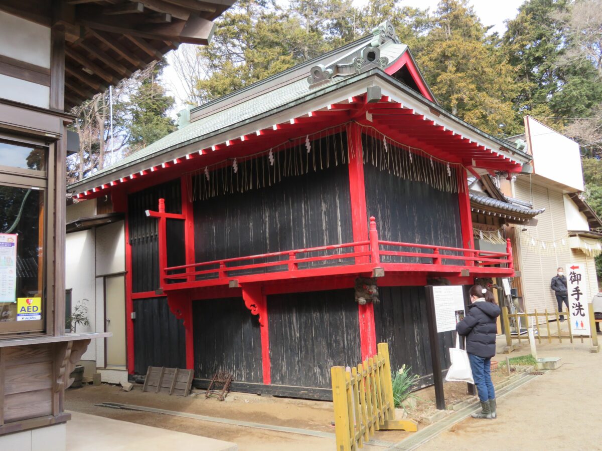 拝殿の西に建立されている神楽殿では、神社の行事の開催日などに、様々な種類の神楽の演舞が行われます。