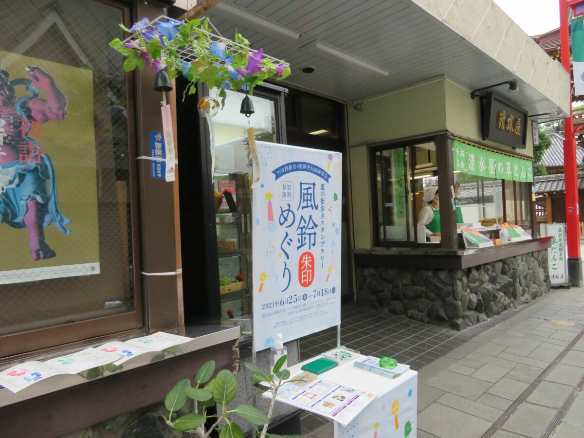 「夏の街歩きスタンプラリー」のスタンプが設置される西新井大師山門前の清水屋