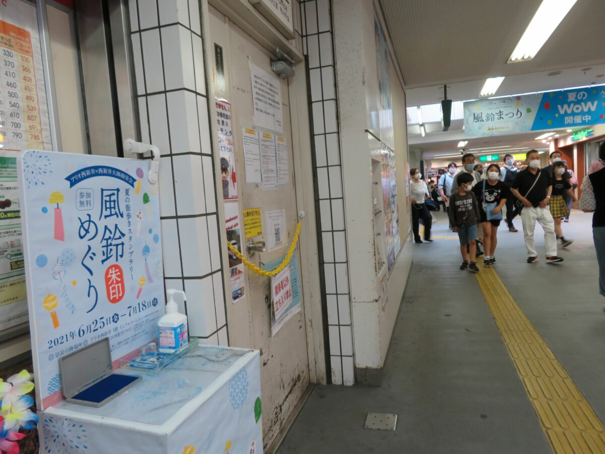 「夏の街歩きスタンプラリー」のスタンプが設置される西新井駅
