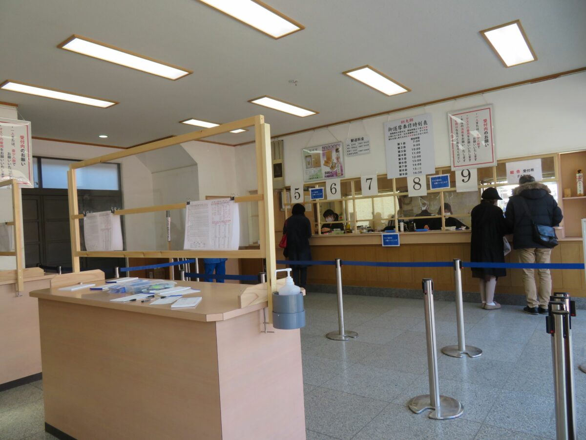 大本堂前のお護摩受付処