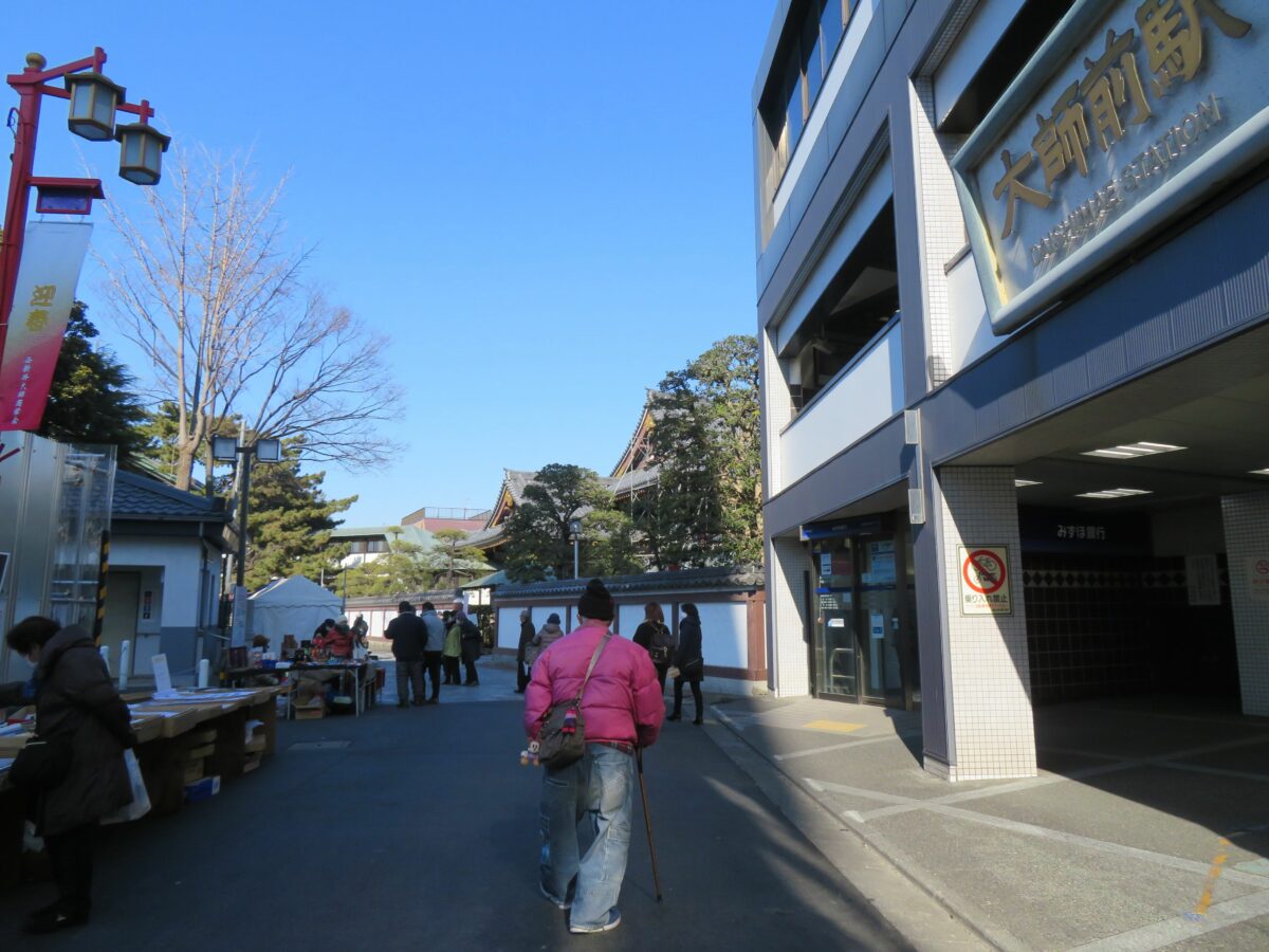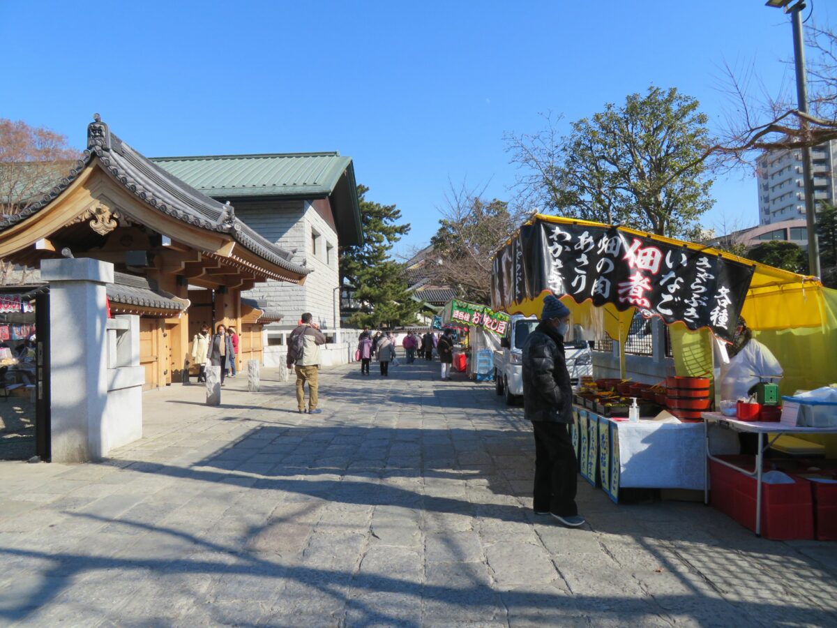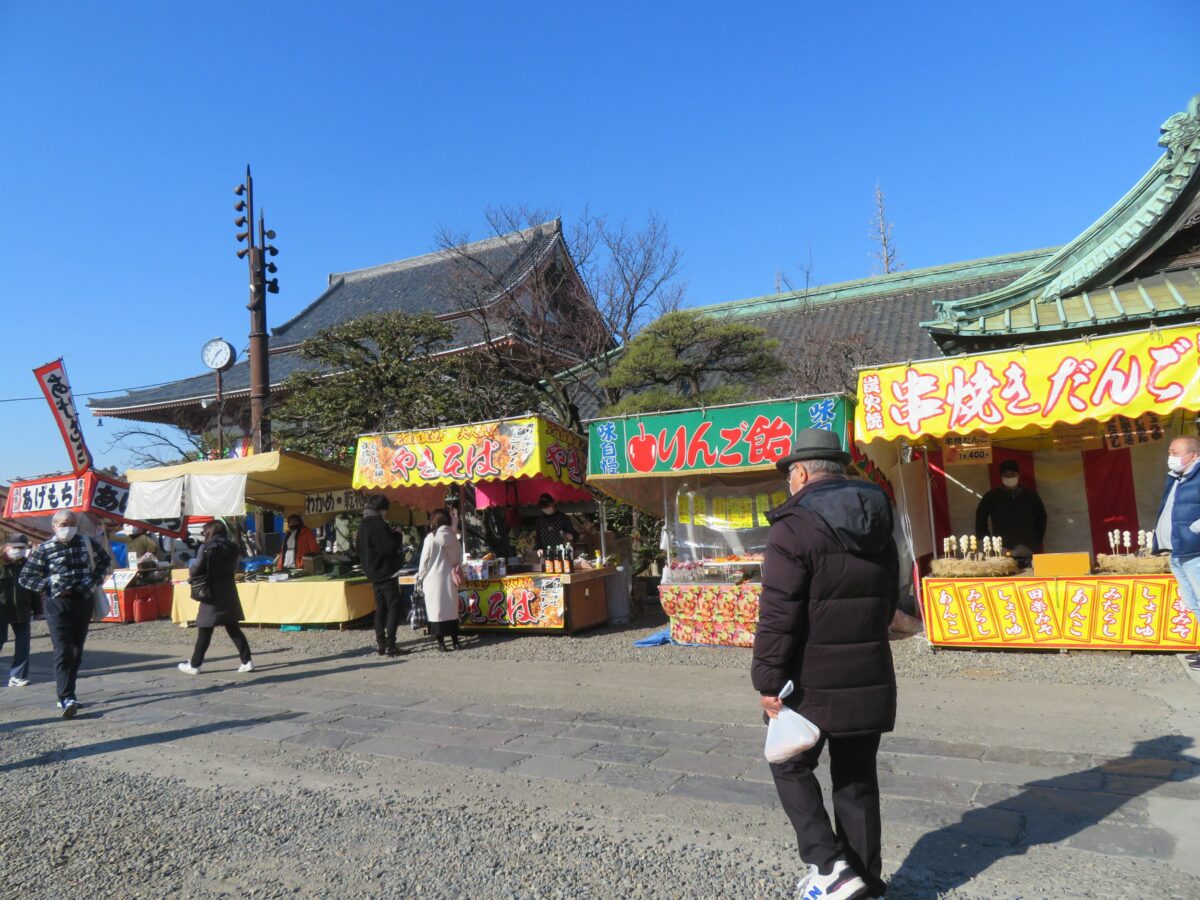 境内に入りきれない露店は、寺院の東門から東武大師線の大師前駅に向かって繋がります。