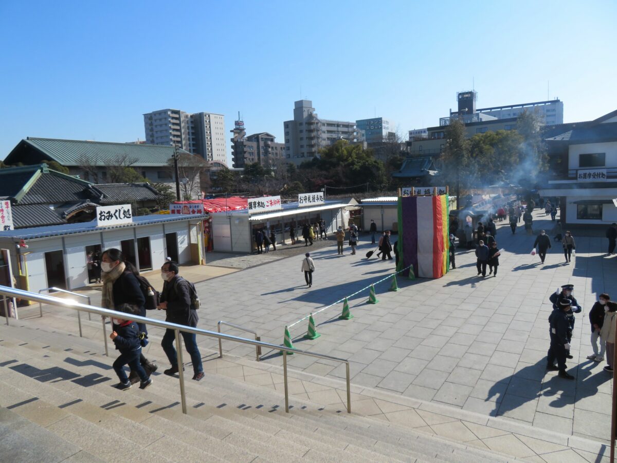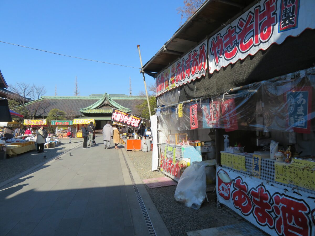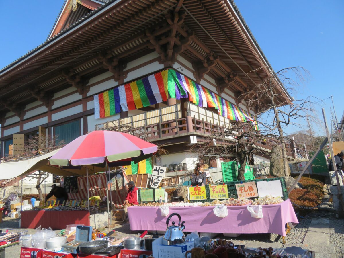 境内に入りきれない露店は、寺院の東門から東武大師線の大師前駅に向かって繋がります。
