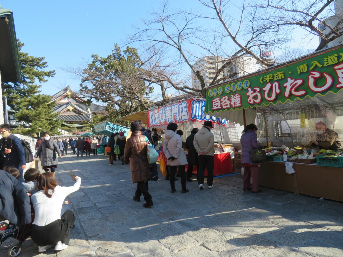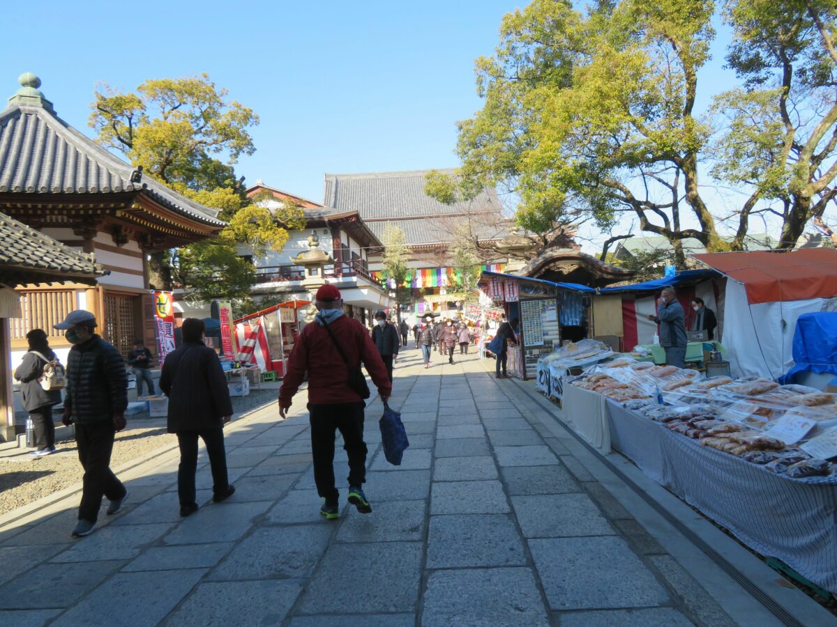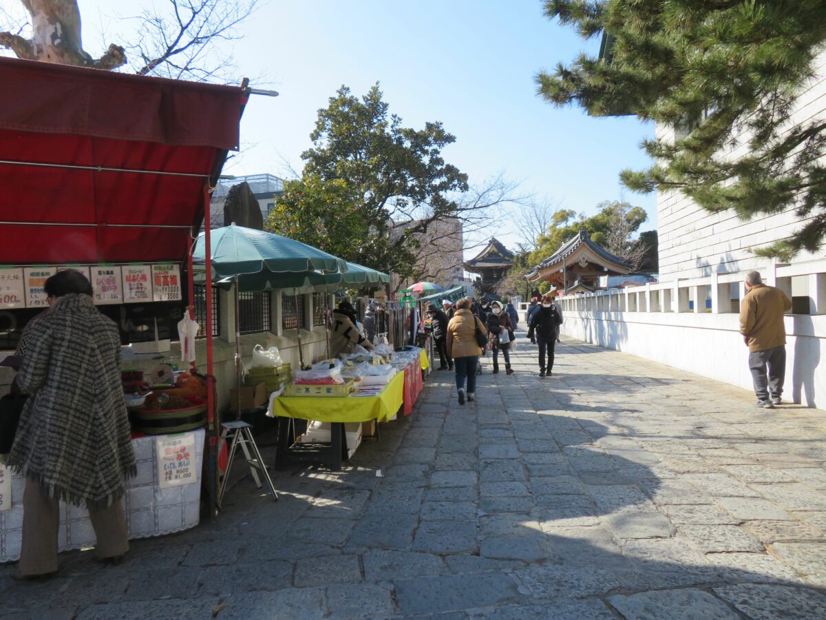大本堂の南東に並ぶ縁起物の露店