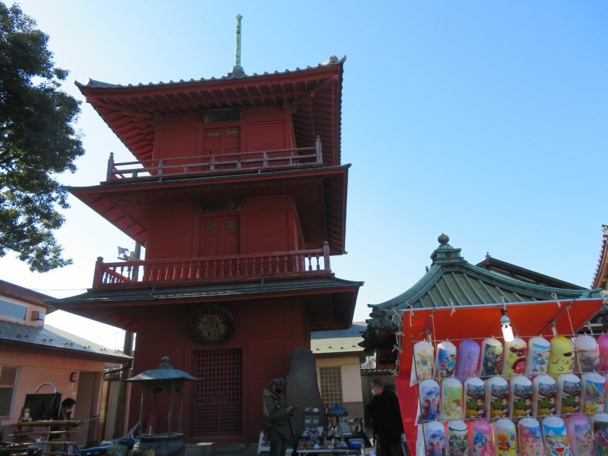 西新井大師の初大師では縁日の雰囲気をたっぷりと味わうことができますが、境内には数々の堂宇が建立されています。山門と大本堂の間に建つ三匝堂や塩地蔵の特徴的な姿を見落とすことはできないでしょう。三匝堂は都内に残る唯一の栄螺堂、塩地蔵はいぼ取りに霊験があると伝わります。