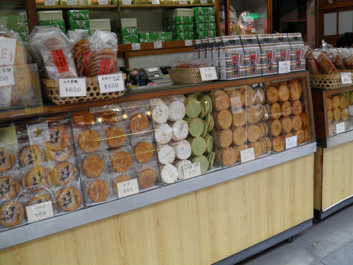 煎餅を販売する浅香家