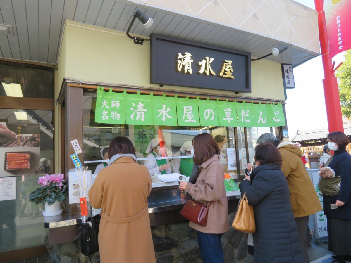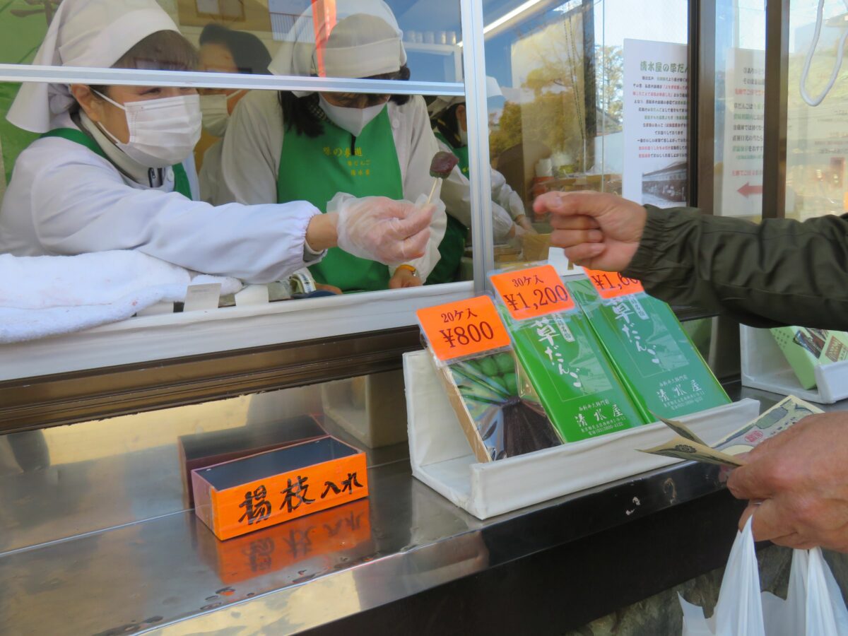 草だんごを店頭販売する清水屋