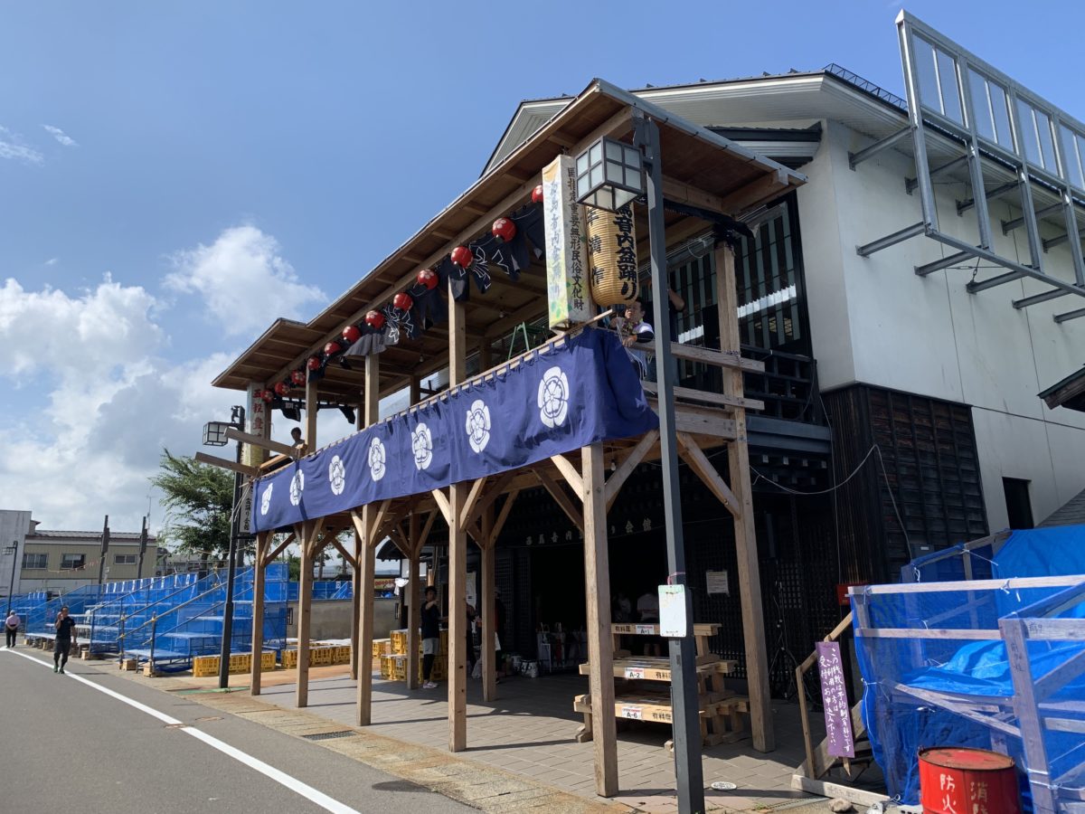 ここが中心となる盆踊り会館。2階で太鼓と笛による演奏が行われます。お土産や観覧席の当日券もここで買えます。