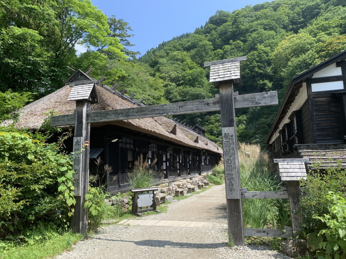 盆踊りの前後は、足をのばして乳頭温泉卿に行くのが断然おすすめ! 写真は「鶴の湯温泉」。秘湯ブームの火付け役となった秘湯中の秘湯。乳白色の源泉がすばらしいのはもちろん、まるで江戸時代にタイプスリップしたような風情も魅力です。バスを利用して他の温泉を廻ってもよいでしょう。