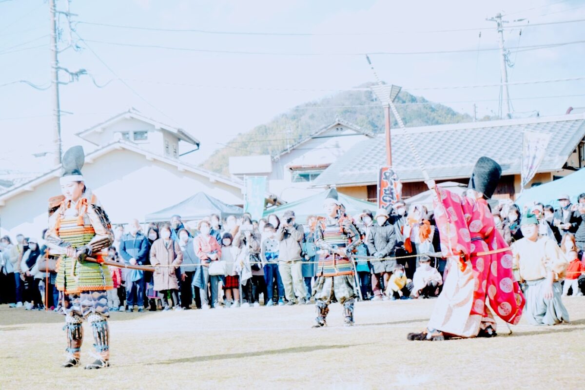 提供は地元、長岡中学校の生徒のみなさんによるものでした。実は今回、源頼政ら武士を演じたのはすべて女の子。コロナ下で中止になっていて久々の再開だったため、演者が見つかるか一時は開催も危ぶまれたのですが、祭りのために一役買って出てくれたのです。