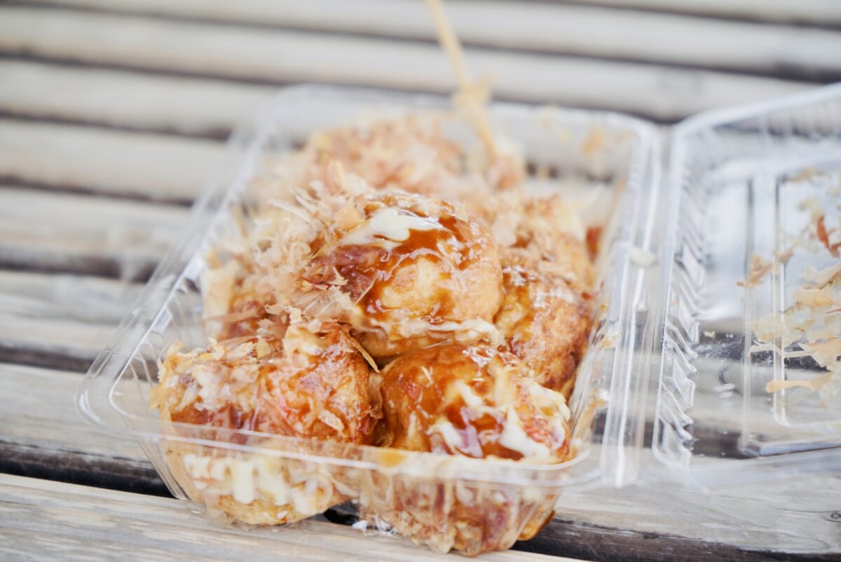 外はフワフワでパクッと口に含むとアツアツでジューシーな旨味がブワーッと広がります。中にはタコではなく、希少部位であるイカの口が詰められ、独特の歯ごたえをプラス。「カツオだしが効いているので、本当はソースをかけなくても美味しいんですよ」と、屋台のおじさんも太鼓判を押す一品です。