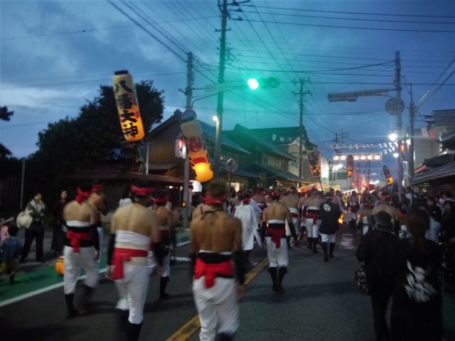とはいえまだ5時半頃、大原民の祭は終わらない。お神輿たちは各社へ帰っていくのですが、それを拒むかのように商店街一帯をわっしょいわっしょい巡り続け、揺れ動く提灯が夜の町を彩り続けます。