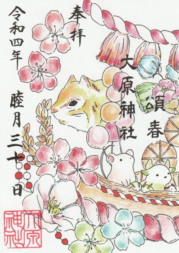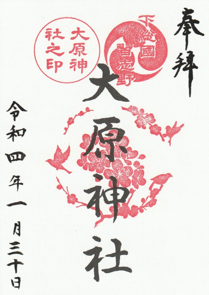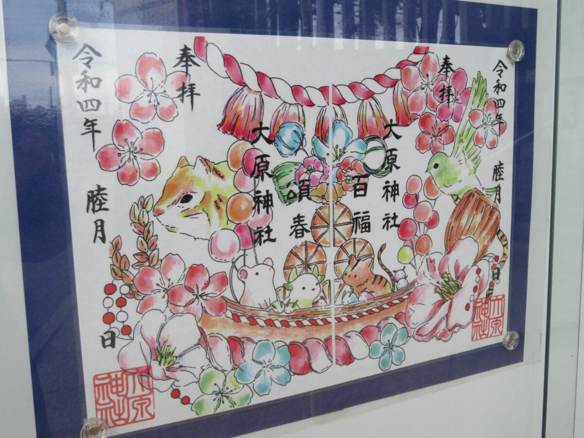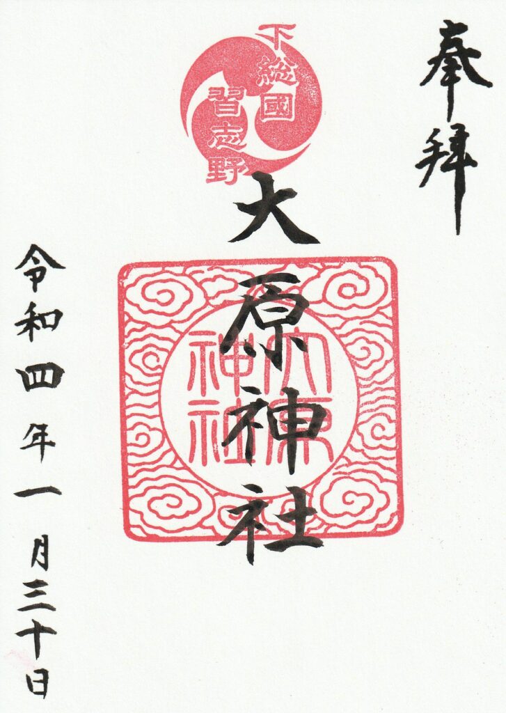 千葉県習志野市の大原神社では通年、月替わり、期間限定など常にバラエティー豊かな御朱印が頒布されています。1124年に創建された後、1865年に宮神輿が新調し、近くの船橋市の二宮神社をメイン会場として開催される「下総三山の七年祭り」に参加しています。
