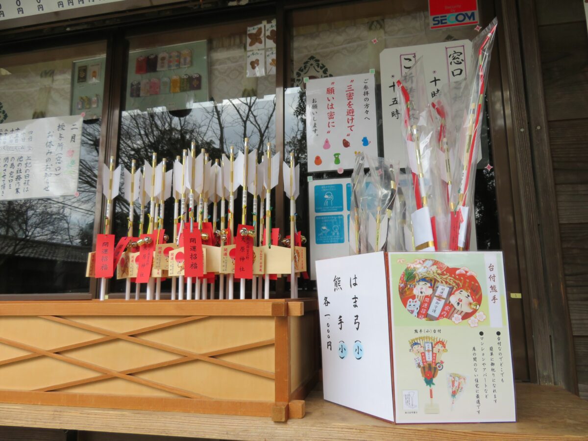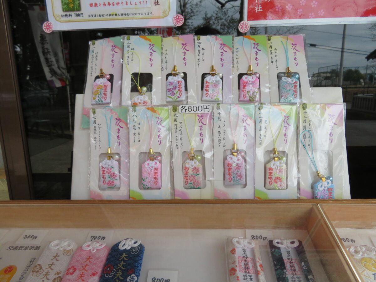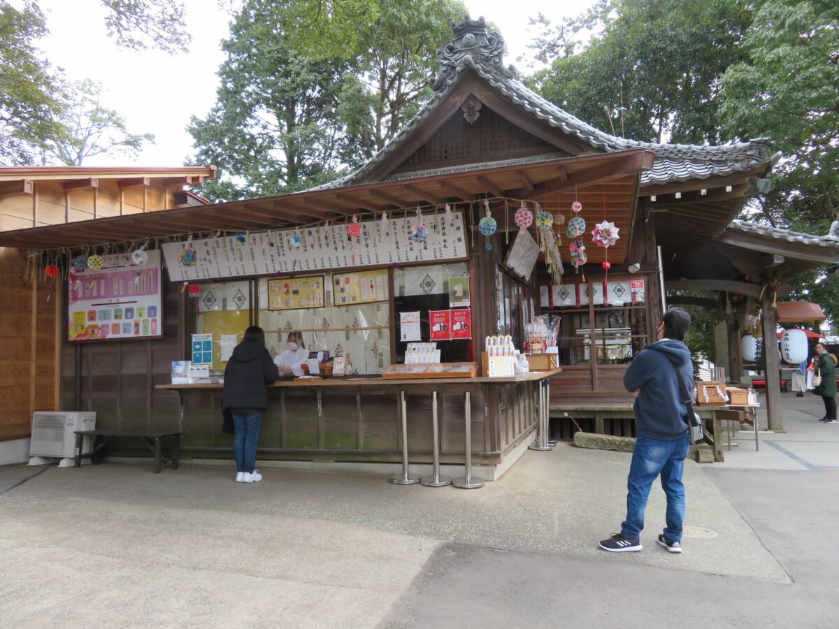 大原神社では拝殿の西面の授与処で御朱印が頒布されています。窓口にはお守りなどの授与品も種類豊富に揃っています。
